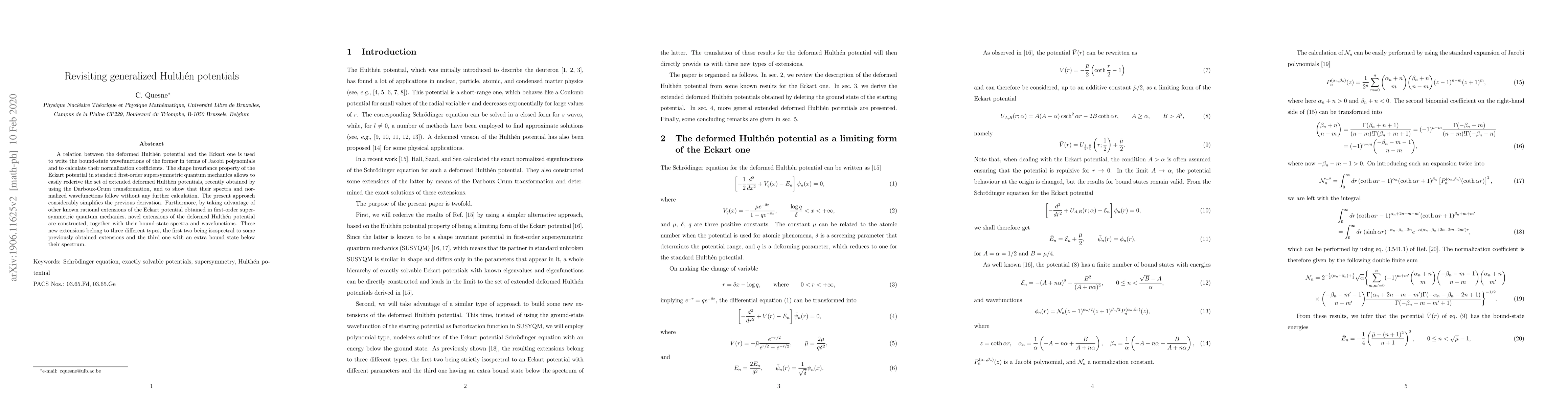 This paper revisits generalized Hulthén potentials, deriving their bound-state wavefunctions via Jacobi polynomials and normalization coefficients through shape invariance properties of the Eckart potential. It constructs novel extensions of the deformed Hulthén potential with unique spectra, including an extra bound state in one type.