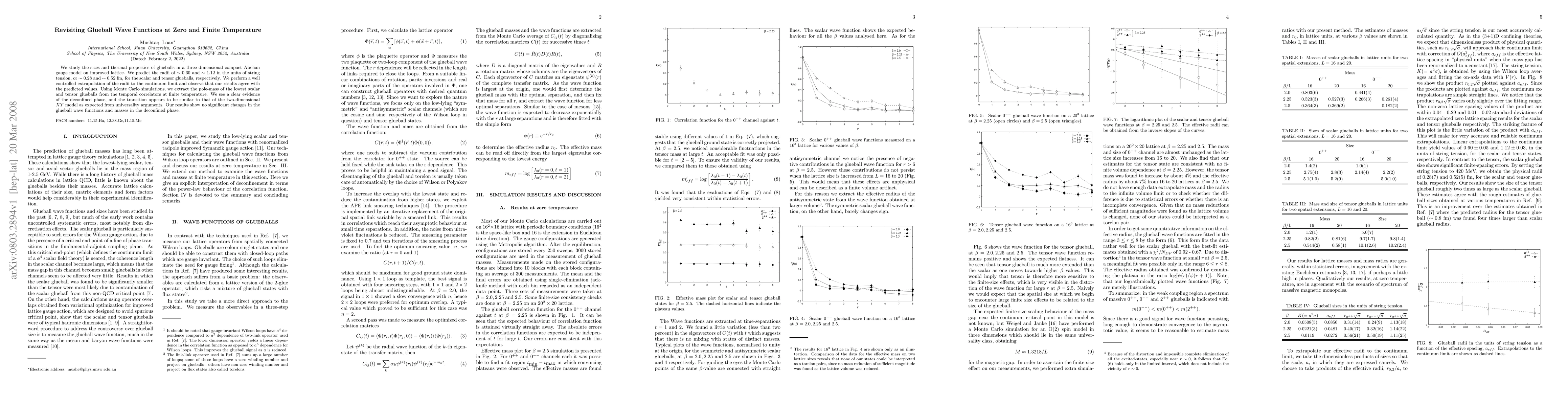 We study the sizes and thermal properties of glueballs in a three dimensional compact Abelian gauge model on improved lattice. We predict the radii of $\sim 0.60$ and $\sim 1.12$ in the units of string tension, or $\sim 0.28$ and $\sim 0.52$ fm, for the scalar and tensor glueballs, respectively. We perform a well controlled extrapolation of the radii to the continuum limit and observe that our results agree with the predicted values. Using Monte Carlo simulations, we extract the pole-mass of the lowest scalar and tensor glueballs from the temporal correlators at finite temperature. We see a clear evidence of the deconfined phase, and the transition appears to be similar to that of the two-dimensional XY model as expected from universality arguments. Our results show no significant changes in the glueball wave functions and masses in the deconfined phase.