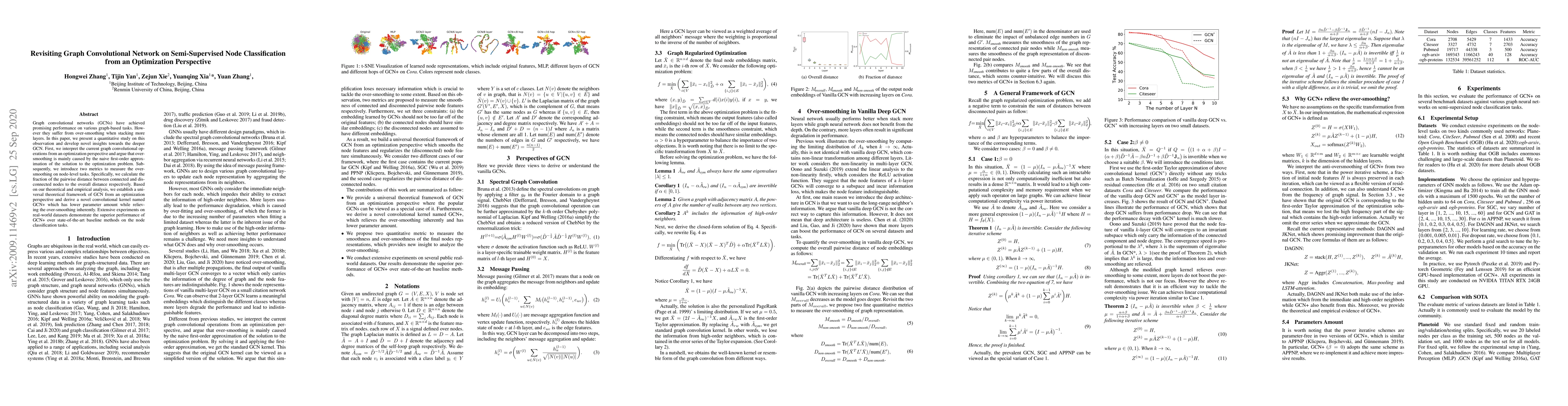 Graph convolutional networks (GCNs) have achieved promising performance on various graph-based tasks. However they suffer from over-smoothing when stacking more layers. In this paper, we present a quantitative study on this observation and develop novel insights towards the deeper GCN. First, we interpret the current graph convolutional operations from an optimization perspective and argue that over-smoothing is mainly caused by the naive first-order approximation of the solution to the optimization problem. Subsequently, we introduce two metrics to measure the over-smoothing on node-level tasks. Specifically, we calculate the fraction of the pairwise distance between connected and disconnected nodes to the overall distance respectively. Based on our theoretical and empirical analysis, we establish a universal theoretical framework of GCN from an optimization perspective and derive a novel convolutional kernel named GCN+ which has lower parameter amount while relieving the over-smoothing inherently. Extensive experiments on real-world datasets demonstrate the superior performance of GCN+ over state-of-the-art baseline methods on the node classification tasks.