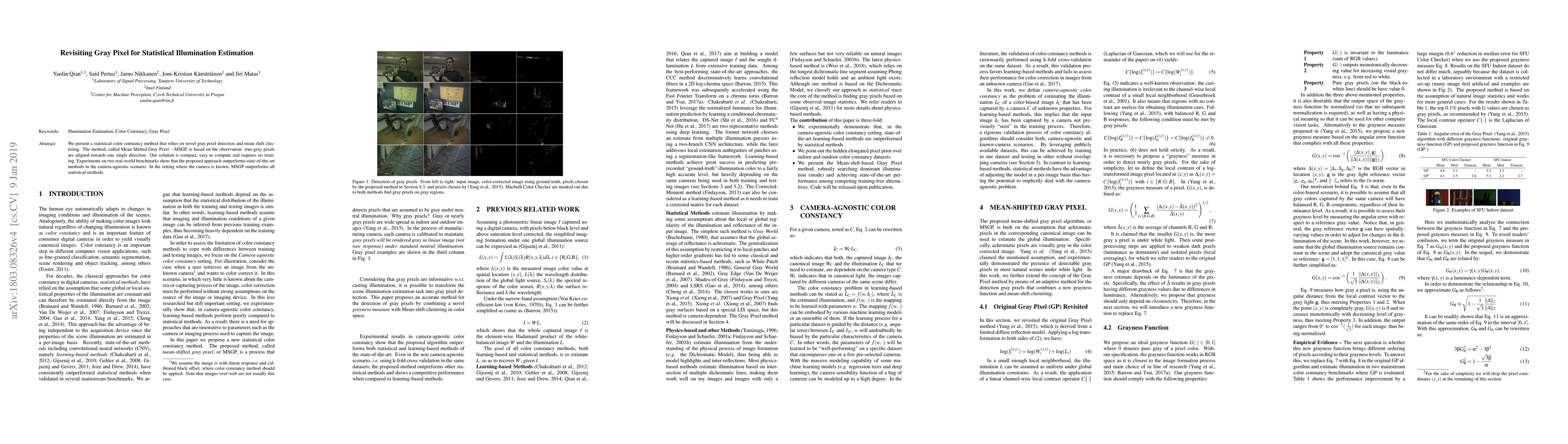 We present a statistical color constancy method that relies on novel gray pixel detection and mean shift clustering. The method, called Mean Shifted Grey Pixel -- MSGP, is based on the observation: true-gray pixels are aligned towards one single direction. Our solution is compact, easy to compute and requires no training. Experiments on two real-world benchmarks show that the proposed approach outperforms state-of-the-art methods in the camera-agnostic scenario. In the setting where the camera is known, MSGP outperforms all statistical methods.