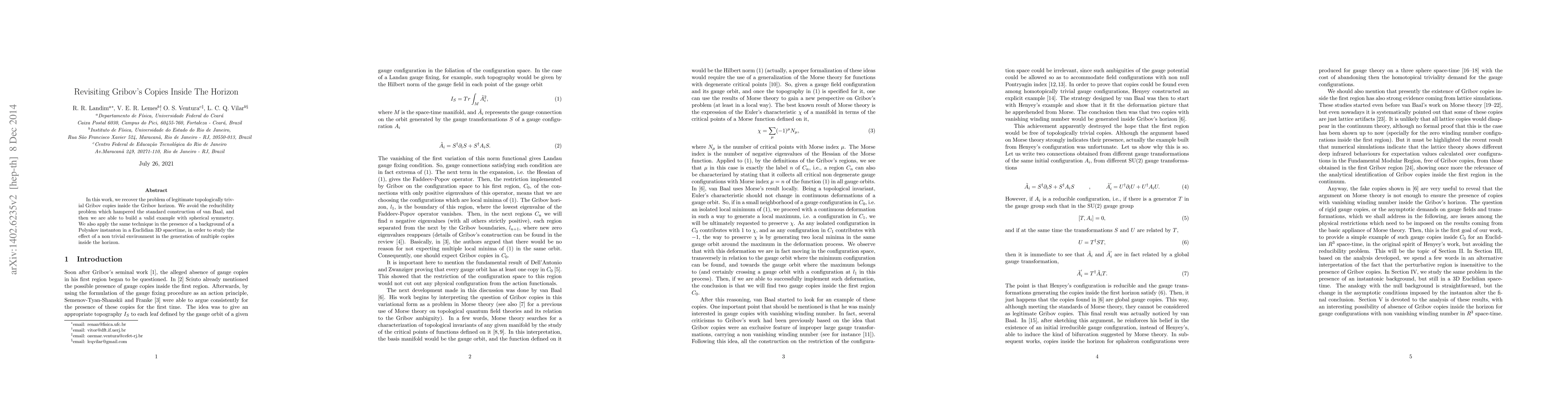 In this work, we recover the problem of legitimate topologically trivial Gribov copies inside the Gribov horizon. We avoid the reducibility problem which hampered the standard construction of van Baal, and then we are able to build a valid example with spherical symmetry. We also apply the same technique in the presence of a background of a Polyakov instanton in a Euclidian 3D spacetime, in order to study the effect of a non trivial environment in the generation of multiple copies inside the horizon.