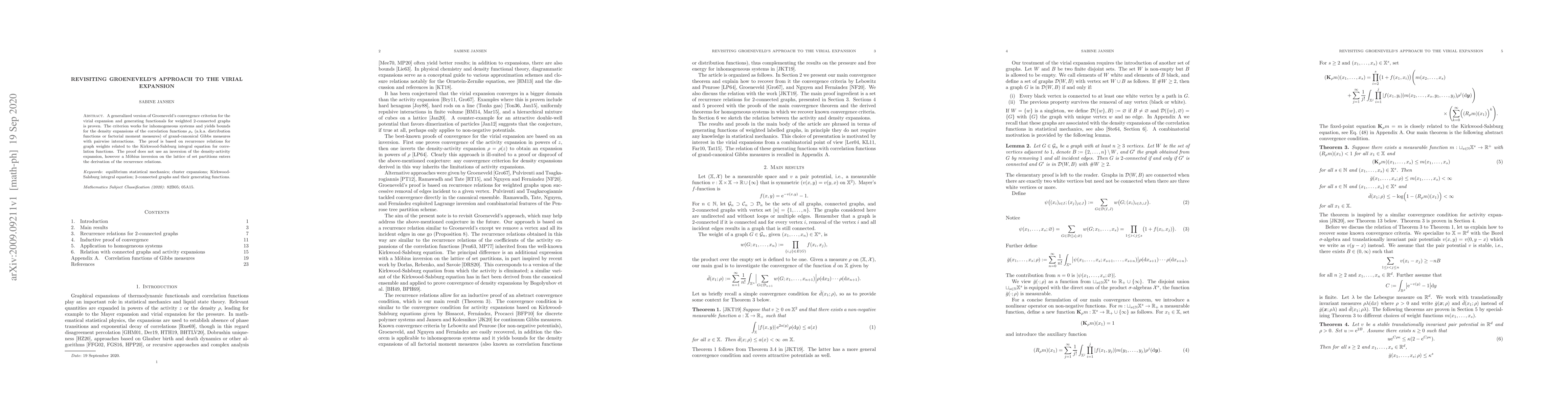 A generalized version of Groeneveld's convergence criterion for the virial expansion and generating functionals for weighted $2$-connected graphs is proven. The criterion works for inhomogeneous systems and yields bounds for the density expansions of the correlation functions $\rho_s$ (a.k.a. distribution functions or factorial moment measures) of grand-canonical Gibbs measures with pairwise interactions. The proof is based on recurrence relations for graph weights related to the Kirkwood-Salsburg integral equation for correlation functions. The proof does not use an inversion of the density-activity expansion, however a Moebius inversion on the lattice of set partitions enters the derivation of the recurrence relations.