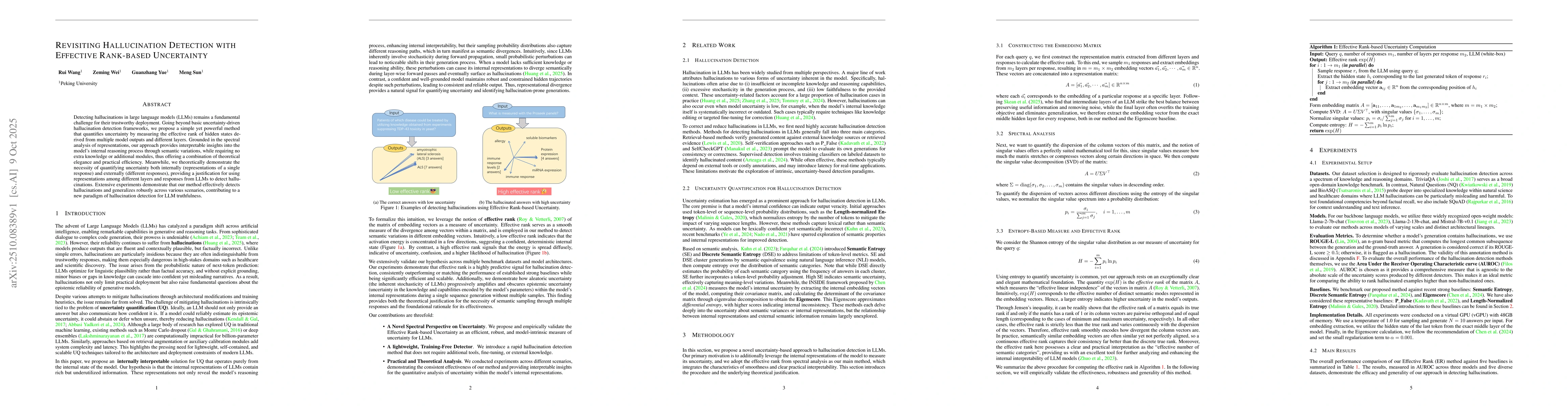 Detecting hallucinations in large language models (LLMs) remains a fundamental challenge for their trustworthy deployment. Going beyond basic uncertainty-driven hallucination detection frameworks, we propose a simple yet powerful method that quantifies uncertainty by measuring the effective rank of hidden states derived from multiple model outputs and different layers. Grounded in the spectral analysis of representations, our approach provides interpretable insights into the model's internal reasoning process through semantic variations, while requiring no extra knowledge or additional modules, thus offering a combination of theoretical elegance and practical efficiency. Meanwhile, we theoretically demonstrate the necessity of quantifying uncertainty both internally (representations of a single response) and externally (different responses), providing a justification for using representations among different layers and responses from LLMs to detect hallucinations. Extensive experiments demonstrate that our method effectively detects hallucinations and generalizes robustly across various scenarios, contributing to a new paradigm of hallucination detection for LLM truthfulness.