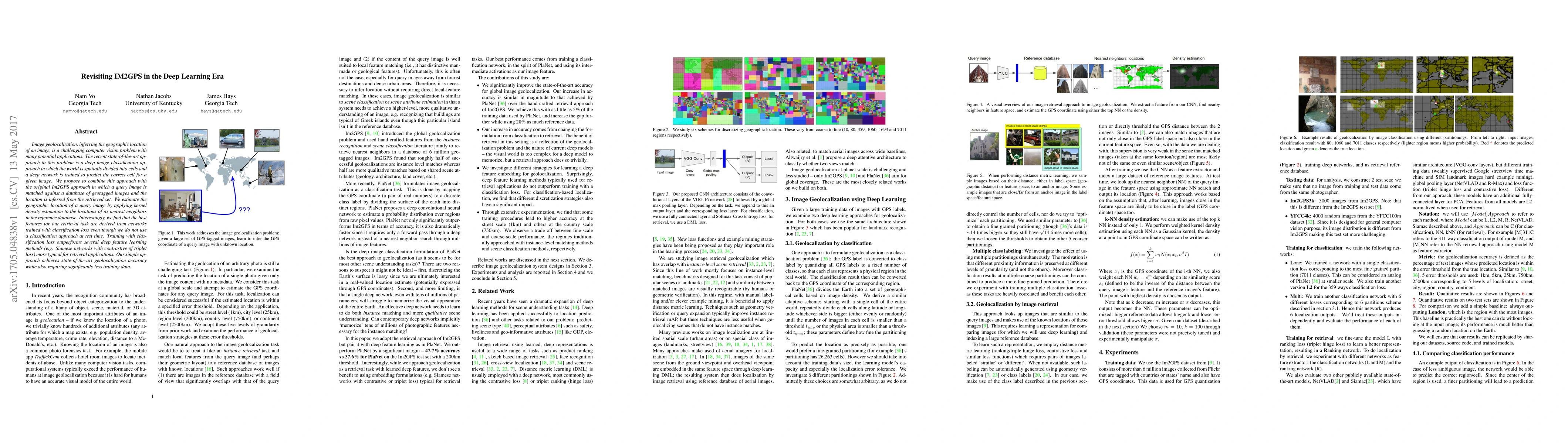 Image geolocalization, inferring the geographic location of an image, is a challenging computer vision problem with many potential applications. The recent state-of-the-art approach to this problem is a deep image classification approach in which the world is spatially divided into cells and a deep network is trained to predict the correct cell for a given image. We propose to combine this approach with the original Im2GPS approach in which a query image is matched against a database of geotagged images and the location is inferred from the retrieved set. We estimate the geographic location of a query image by applying kernel density estimation to the locations of its nearest neighbors in the reference database. Interestingly, we find that the best features for our retrieval task are derived from networks trained with classification loss even though we do not use a classification approach at test time. Training with classification loss outperforms several deep feature learning methods (e.g. Siamese networks with contrastive of triplet loss) more typical for retrieval applications. Our simple approach achieves state-of-the-art geolocalization accuracy while also requiring significantly less training data.