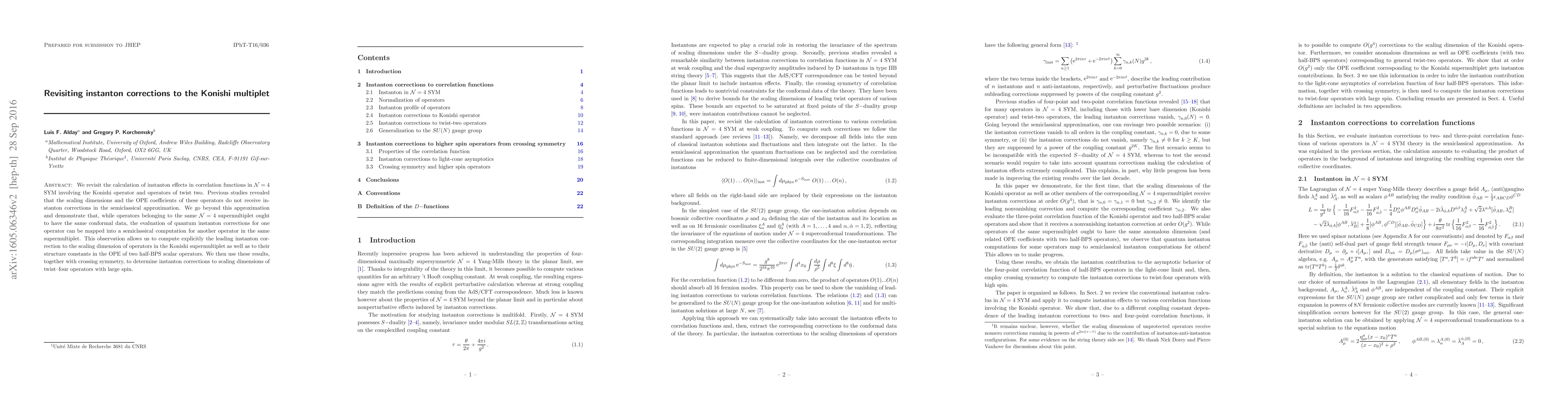 This paper revisits instanton corrections in the ${\cal N}=4$ SYM theory, focusing on the Konishi multiplet. It demonstrates that while semiclassical approximations suggest no instanton corrections, a more refined approach allows for explicit computation of leading instanton corrections to scaling dimensions and OPE structure constants within the Konishi supermultiplet.
