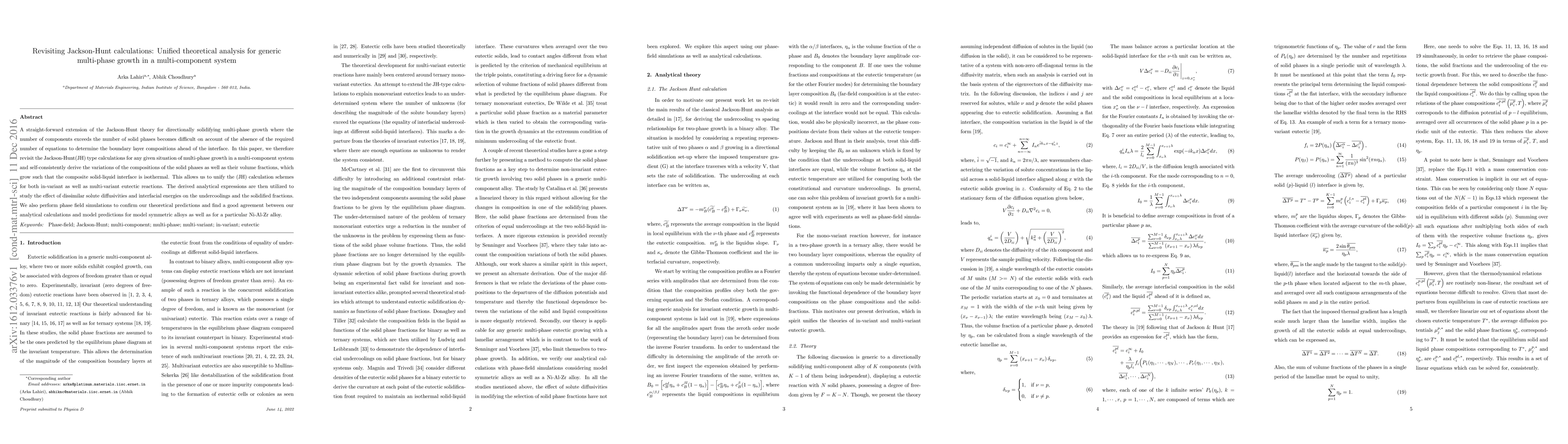 Researchers revisit the Jackson-Hunt theory to unify calculations for multi-phase growth in multi-component systems, deriving new analytical expressions that predict effects of solute diffusivities and interfacial energies on undercoolings and solidified fractions with good agreement from phase field simulations.