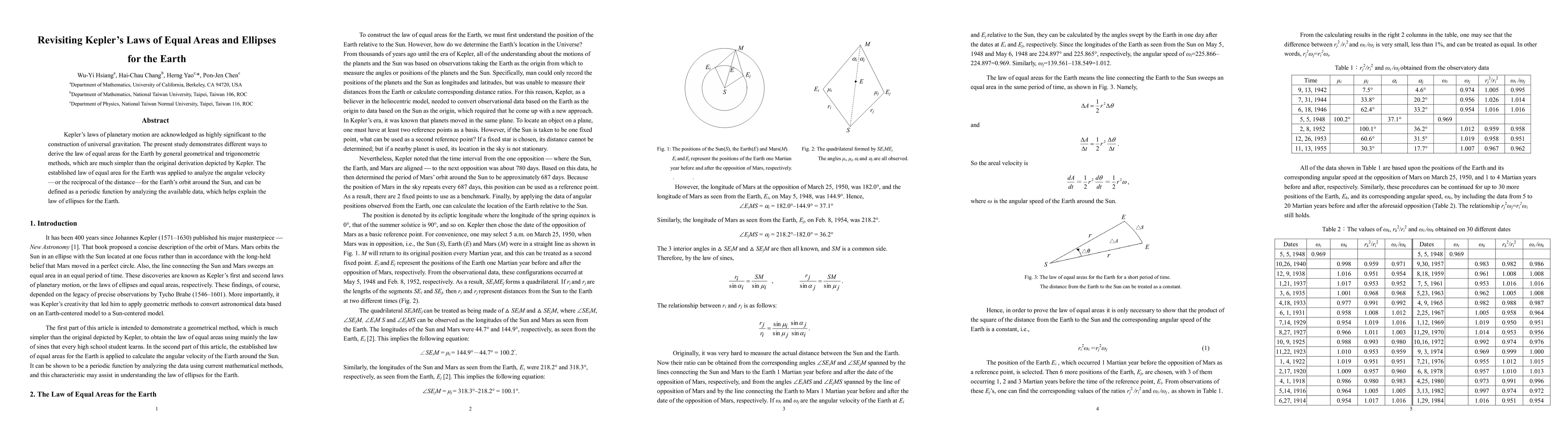 This paper revisits Kepler's laws, presenting simpler geometrical and trigonometric derivations for the law of equal areas for Earth's orbit, and uses this to analyze Earth's angular velocity as a periodic function, thereby supporting the law of ellipses.
