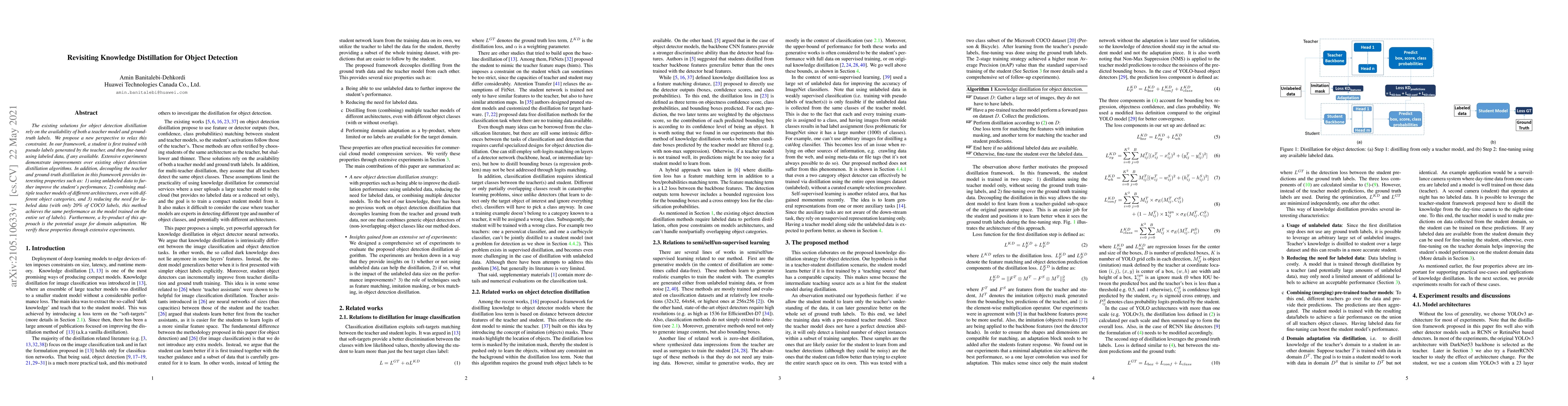 The existing solutions for object detection distillation rely on the availability of both a teacher model and ground-truth labels. We propose a new perspective to relax this constraint. In our framework, a student is first trained with pseudo labels generated by the teacher, and then fine-tuned using labeled data, if any available. Extensive experiments demonstrate improvements over existing object detection distillation algorithms. In addition, decoupling the teacher and ground-truth distillation in this framework provides interesting properties such: as 1) using unlabeled data to further improve the student's performance, 2) combining multiple teacher models of different architectures, even with different object categories, and 3) reducing the need for labeled data (with only 20% of COCO labels, this method achieves the same performance as the model trained on the entire set of labels). Furthermore, a by-product of this approach is the potential usage for domain adaptation. We verify these properties through extensive experiments.