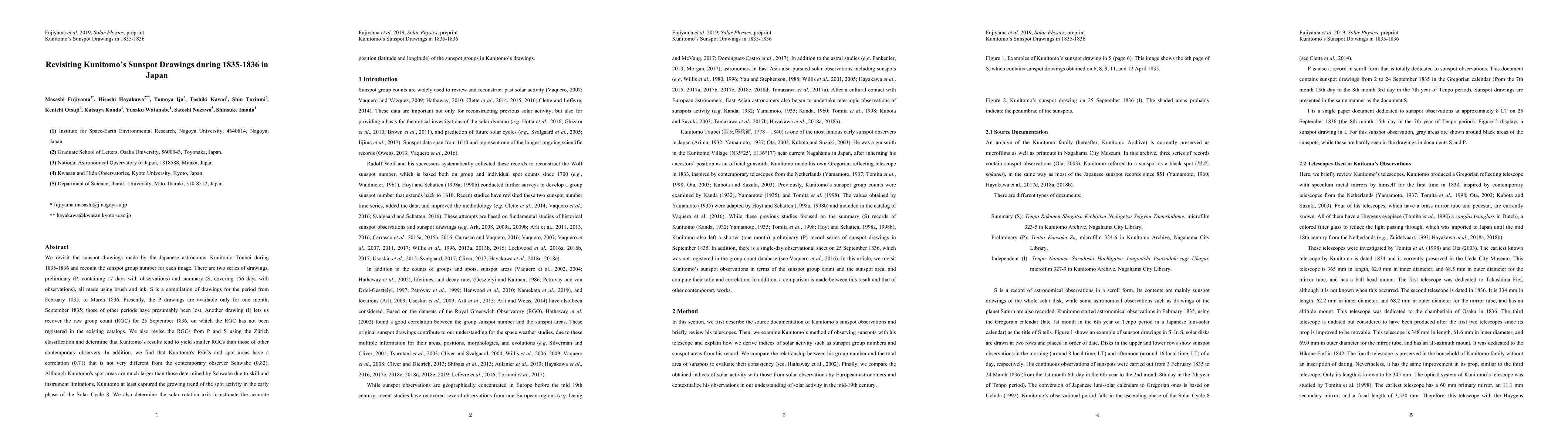 We revisit the sunspot drawings made by the Japanese astronomer Kunitomo Toubei during 1835-1836 and recount the sunspot group number for each image. There are two series of drawings, preliminary (P, containing 17 days with observations) and summary (S, covering 156 days with observations), all made using brush and ink. S is a compilation of drawings for the period from February 1835, to March 1836. Presently, the P drawings are available only for one month, September 1835; those of other periods have presumably been lost. Another drawing (I) lets us recover the raw group count (RGC) for 25 September 1836, on which the RGC has not been registered in the existing catalogs. We also revise the RGCs from P and S using the Zurich classification and determine that Kunitomo's results tend to yield smaller RGCs than those of other contemporary observers. In addition, we find that Kunitomo's RGCs and spot areas have a correlation (0.71) that is not very different from the contemporary observer Schwabe (0.82). Although Kunitomo's spot areas are much larger than those determined by Schwabe due to skill and instrument limitations, Kunitomo at least captured the growing trend of the spot activity in the early phase of the Solar Cycle 8. We also determine the solar rotation axis to estimate the accurate position (latitude and longitude) of the sunspot groups in Kunitomo's drawings.