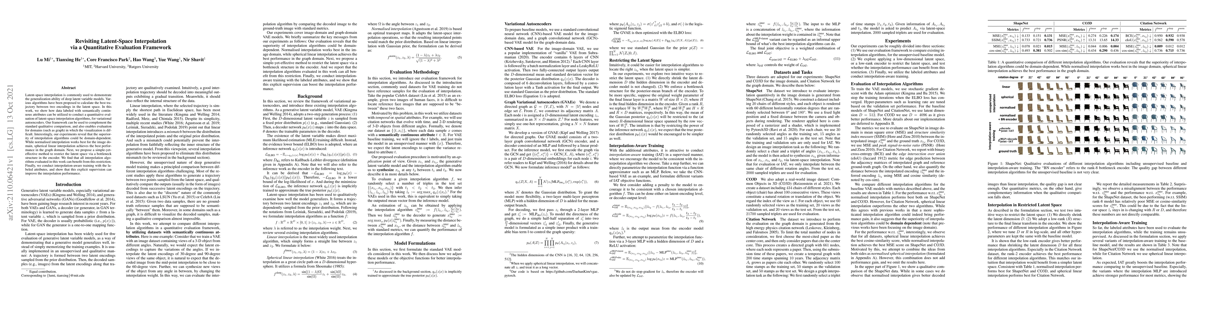 Latent-space interpolation is commonly used to demonstrate the generalization ability of deep latent variable models. Various algorithms have been proposed to calculate the best trajectory between two encodings in the latent space. In this work, we show how data labeled with semantically continuous attributes can be utilized to conduct a quantitative evaluation of latent-space interpolation algorithms, for variational autoencoders. Our framework can be used to complement the standard qualitative comparison, and also enables evaluation for domains (such as graph) in which the visualization is difficult. Interestingly, our experiments reveal that the superiority of interpolation algorithms could be domain-dependent. While normalised interpolation works best for the image domain, spherical linear interpolation achieves the best performance in the graph domain. Next, we propose a simple-yet-effective method to restrict the latent space via a bottleneck structure in the encoder. We find that all interpolation algorithms evaluated in this work can benefit from this restriction. Finally, we conduct interpolation-aware training with the labeled attributes, and show that this explicit supervision can improve the interpolation performance.