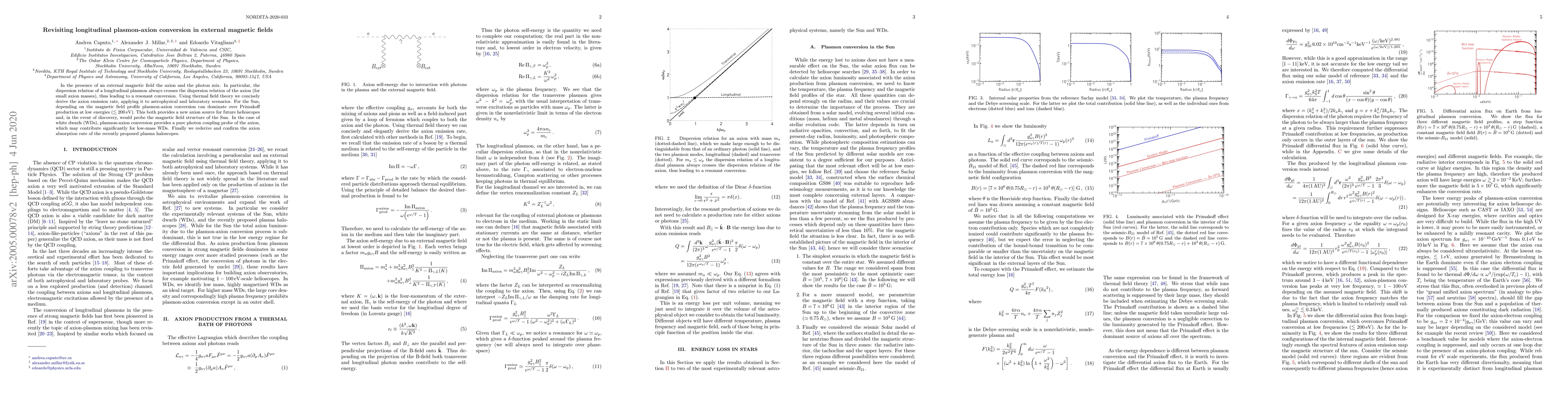 This paper revisits the longitudinal plasmon-axion conversion in external magnetic fields, deriving the axion emission rate using thermal field theory. It finds that plasmon-axion conversion can dominate over Primakoff production in the Sun at low energies, offering a new axion source for helioscopes and probing the Sun's magnetic field structure.
