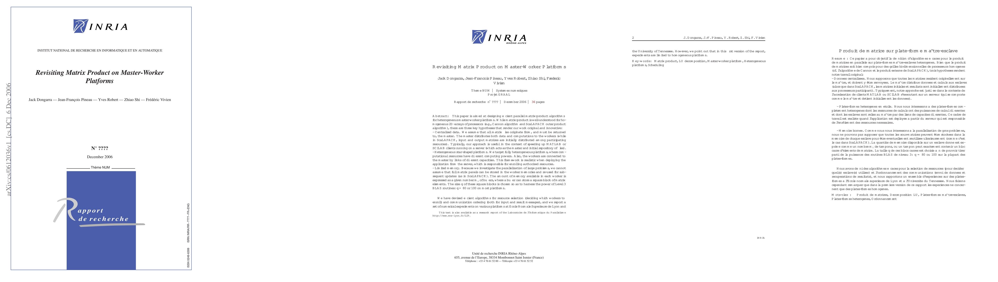 This paper designs efficient parallel matrix-product algorithms for heterogeneous master-worker platforms, focusing on centralized data, diverse computational powers, and limited memory. The authors propose novel algorithms for resource selection and communication ordering, with initial experiments conducted on homogeneous platforms.