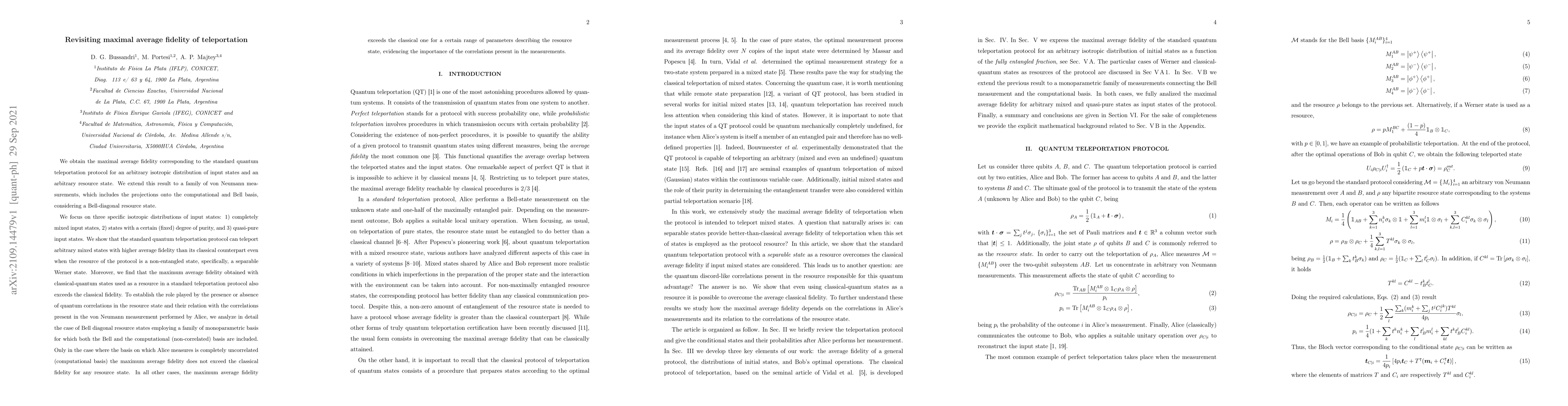 This paper investigates the maximal average fidelity in quantum teleportation for various isotropic input state distributions and resource states, demonstrating that quantum teleportation can achieve higher fidelity than classical methods even with non-entangled resources. The study highlights the significance of quantum correlations in the resource state and the measurement performed by Alice, showing that fidelity exceeds classical limits in most scenarios except when Alice measures in the completely uncorrelated computational basis.
