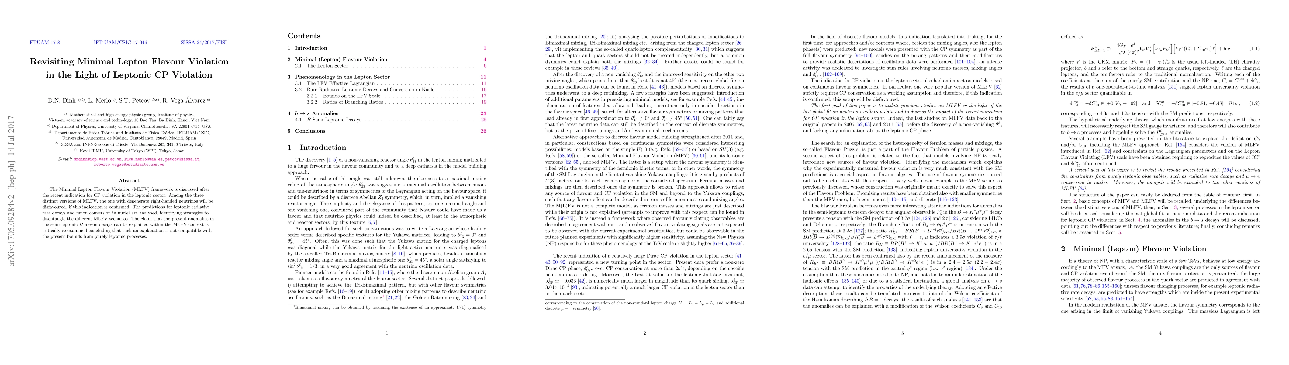The Minimal Lepton Flavour Violation (MLFV) framework is discussed after the recent indication for CP violation in the leptonic sector. Among the three distinct versions of MLFV, the one with degenerate right-handed neutrinos will be disfavoured, if this indication is confirmed. The predictions for leptonic radiative rare decays and muon conversion in nuclei are analysed, identifying strategies to disentangle the different MLFV scenarios. The claim that the present anomalies in the semi-leptonic $B$-meson decays can be explained within the MLFV context is critically re-examined concluding that such an explanation is not compatible with the present bounds from purely leptonic processes.