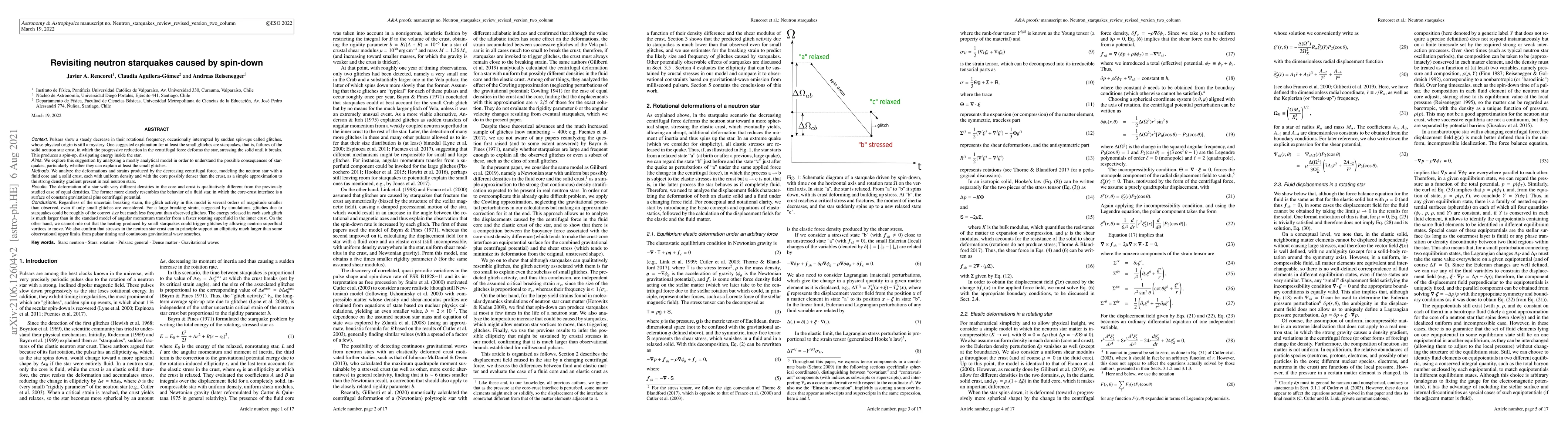 This study investigates neutron starquakes as a cause of pulsar glitches, finding that while starquakes could theoretically produce glitches, the predicted frequency and magnitude are not consistent with observations. The research models neutron stars with a fluid core and solid crust, revealing deformations influenced by decreasing centrifugal force. Despite uncertainties, large breaking strain scenarios suggest possible glitches, albeit infrequent. The model also indicates that crustal stresses could support significant ellipticity, unobserved in current data. The paper concludes that while starquakes may not explain observed glitches, they could trigger them via superfluid vortex movement, and ellipticity from crustal stresses remains a possibility.