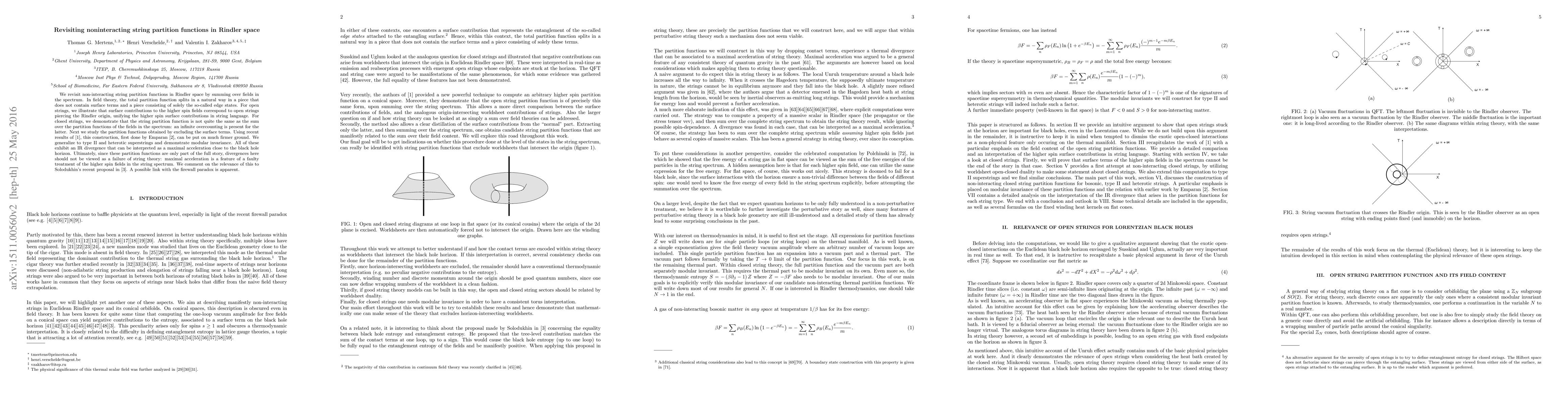 This paper revisits noninteracting string partition functions in Rindler space, showing that surface contributions for open strings correspond to open strings piercing the Rindler origin. It finds an infinite overcounting for closed strings and discusses IR divergences interpreted as maximal acceleration near the black hole horizon, suggesting these divergences are due to a faulty treatment of higher spin fields rather than a failure of string theory.
