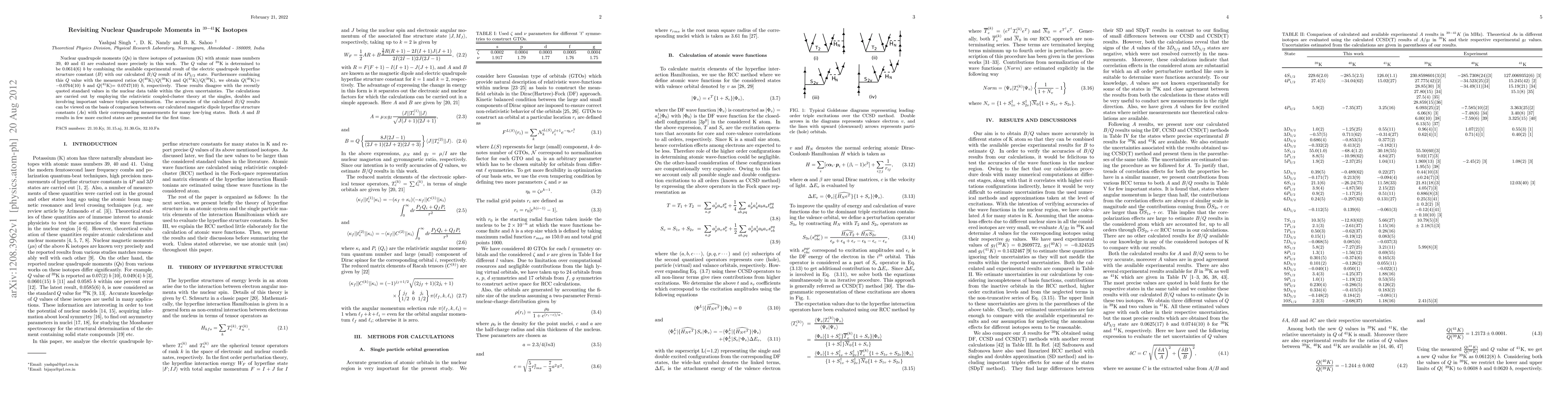 Nuclear quadrupole moments ($Q$s) in three isotopes of potassium (K) with atomic mass numbers 39, 40 and 41 are evaluated more precisely in this work. The $Q$ value of $^{39}$K is determined to be 0.0614(6) $b$ by combining the available experimental result of the electric quadrupole hyperfine structure constant ($B$) with our calculated $B/Q$ result of its $4P_{3/2}$ state. Furthermore combining this $Q$ value with the measured ratios $Q$($ ^{40}$K)$/Q$($ ^{39}$K) and $Q$($ ^{41}$K)$/Q$($ ^{39}$K), we obtain $Q$($ ^{40}$K)$=-0.0764(10) \ b$ and $Q$($ ^{41}$K)$=0.0747(10) \ b$, respectively. These results disagree with the recently quoted standard values in the nuclear data table within the given uncertainties. The calculations are carried out by employing the relativistic coupled-cluster theory at the singles, doubles and involving important valence triples approximation. The accuracies of the calculated $B/Q$ results can be viewed on the basis of comparison between our calculated magnetic dipole hyperfine structure constants ($A$s) with their corresponding measurements for many low-lying states. Both $A$ and $B$ results in few more excited states are presented for the first time.