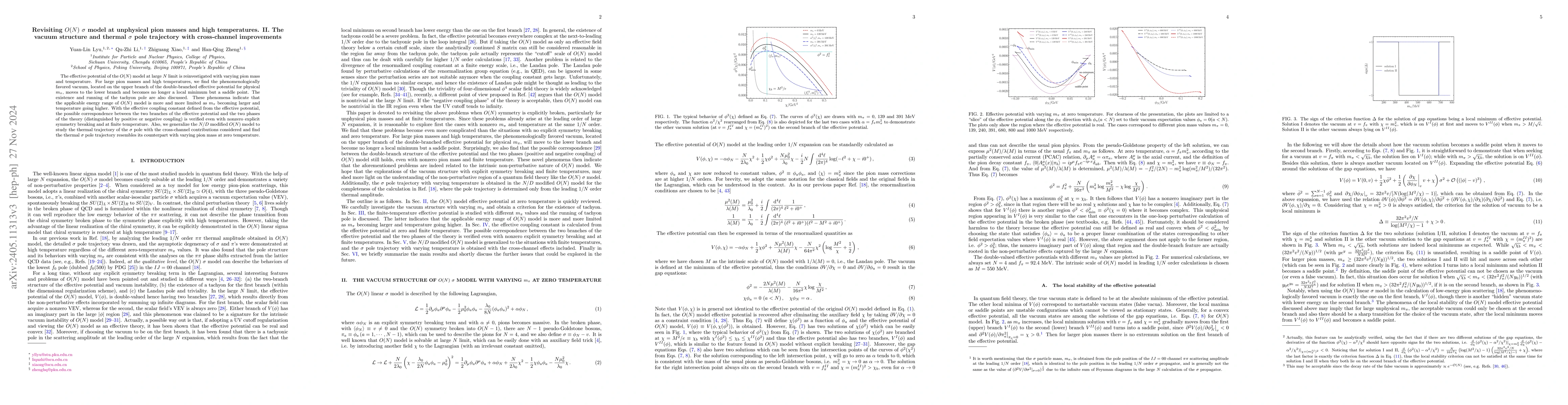This research reexamines the $O(N)$ $\sigma$ model under unphysical pion masses and high temperatures, discovering that the favored vacuum shifts from the upper to the lower branch of the effective potential, becoming a saddle point. It also investigates the thermal $\sigma$ pole trajectory, verifying the correspondence between the two potential branches and phases, and confirms the thermal $\sigma$ pole's behavior mirrors that at zero temperature with cross-channel improvements.