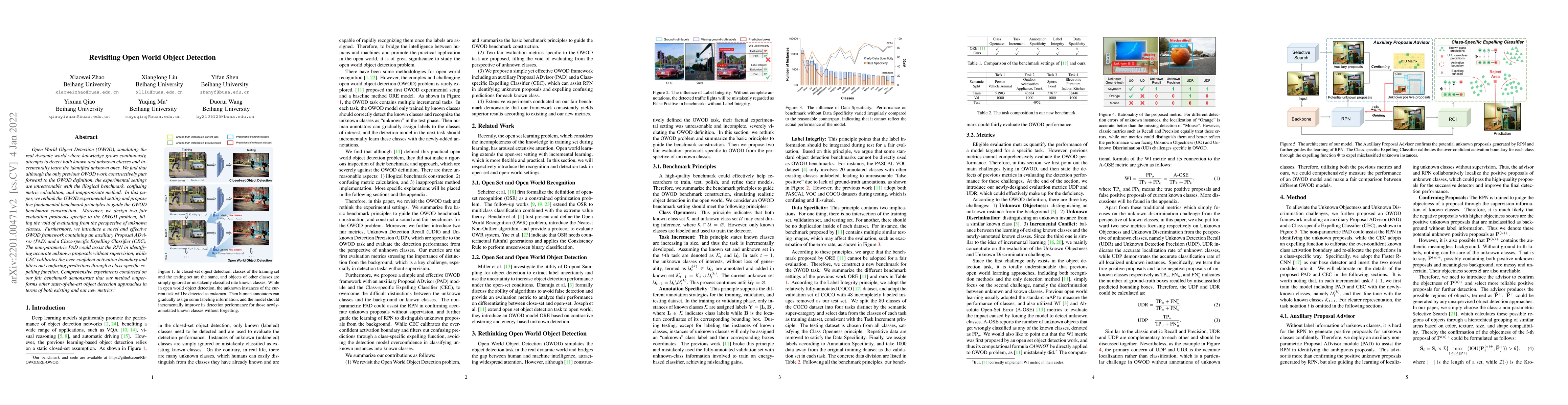 This paper critiques the existing experimental setup for Open World Object Detection (OWOD) and proposes new benchmark principles and evaluation protocols. It introduces a novel OWOD framework with an auxiliary proposal advisor and a class-specific expelling classifier, demonstrating superior performance on the newly proposed fair benchmark.