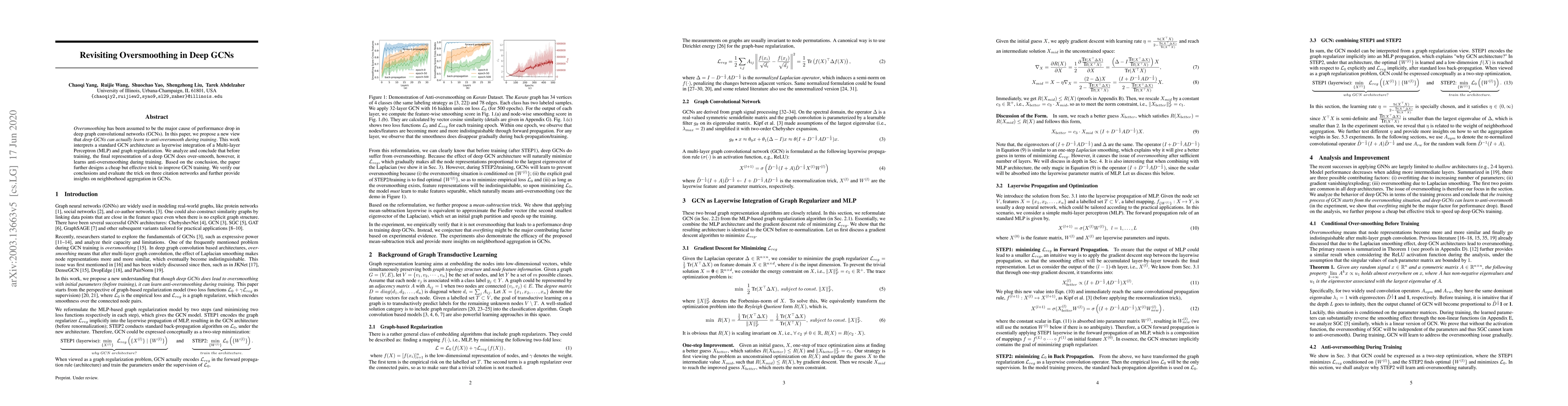 Oversmoothing has been assumed to be the major cause of performance drop in deep graph convolutional networks (GCNs). In this paper, we propose a new view that deep GCNs can actually learn to anti-oversmooth during training. This work interprets a standard GCN architecture as layerwise integration of a Multi-layer Perceptron (MLP) and graph regularization. We analyze and conclude that before training, the final representation of a deep GCN does over-smooth, however, it learns anti-oversmoothing during training. Based on the conclusion, the paper further designs a cheap but effective trick to improve GCN training. We verify our conclusions and evaluate the trick on three citation networks and further provide insights on neighborhood aggregation in GCNs.