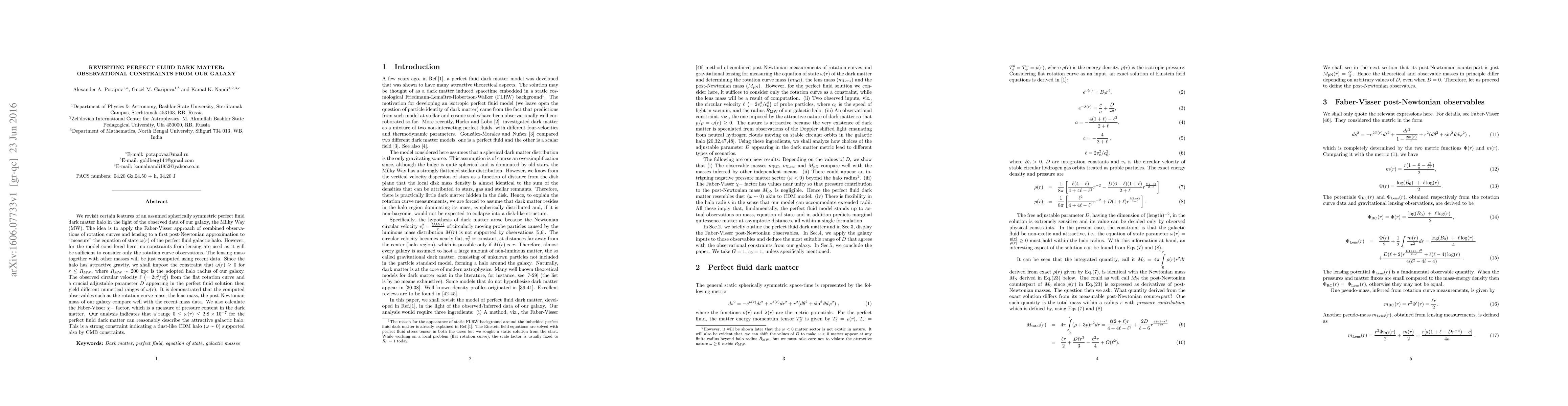 We revisit certain features of an assumed spherically symmetric perfect fluid dark matter halo in the light of the observed data of our galaxy
