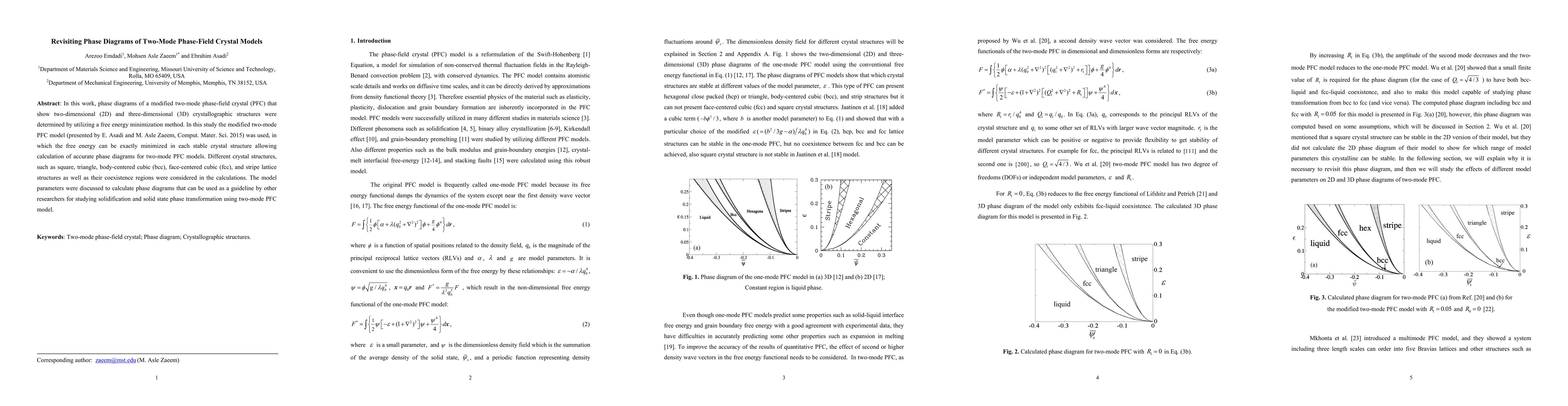The main technical contribution of this research is the development and application of the modified two-mode PFC (M2PFC) model, which incorporates a dependent parameter (0R) to exactly minimize free energy functional in each crystal structure, leading to more accurate phase diagrams.