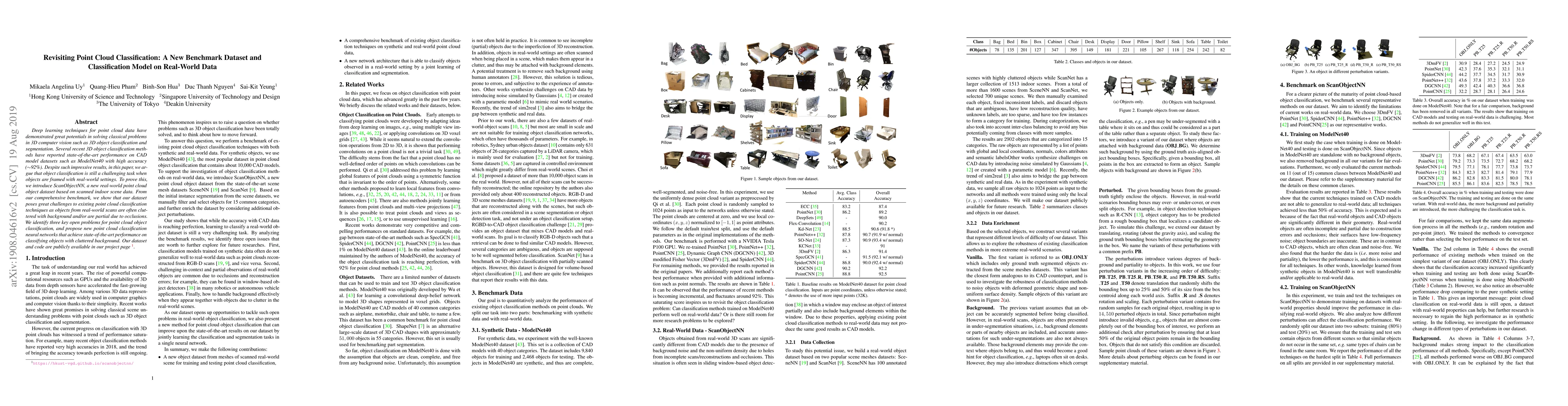 Researchers created a new dataset for point cloud object classification in real-world settings, finding that existing models struggle with cluttered backgrounds and partial objects, and proposed new neural networks to improve performance.