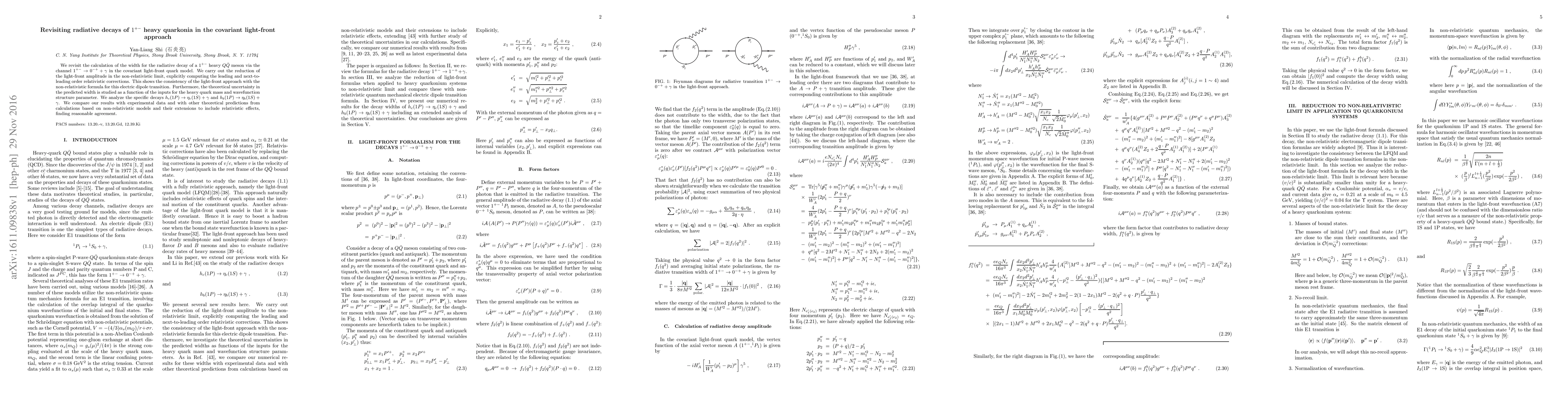 This paper revisits the radiative decay widths of $1^{+-}$ heavy quarkonia using the covariant light-front quark model, computing leading and next-to-leading order relativistic corrections. It finds consistency with non-relativistic formulas and compares theoretical predictions with experimental data for decays $h_{c}(1P) \to \eta_{c}(1S) + \gamma$ and $h_{b}(1P) \to \eta_{b}(1S) + \gamma$.