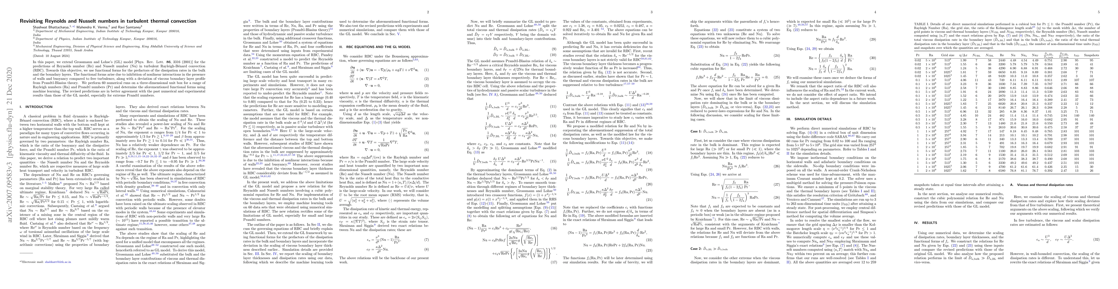 The paper extends Grossmann and Lohse's model by incorporating functional forms for prefactors of dissipation rates in bulk and boundary layers, determined via machine learning from 60 numerical runs on a 3D unit box for a range of Ra and Pr.