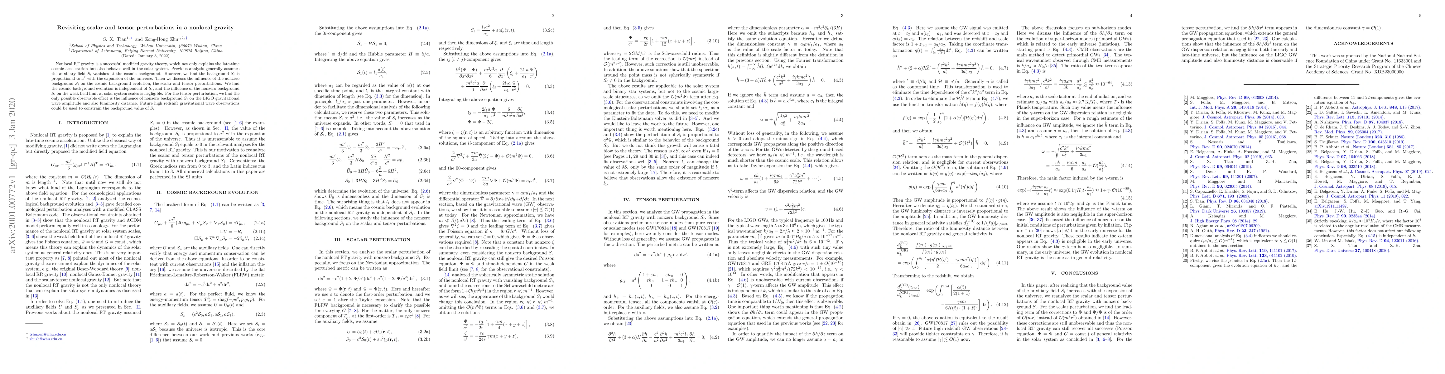 Nonlocal RT gravity is a successful modified gravity theory, which not only explains the late-time cosmic acceleration but also behaves well in the solar system. Previous analysis generally assumes the auxiliary field $S_i$ vanishes at the cosmic background. However, we find the background $S_i$ is proportional to $a^2$ with the expansion of the universe. Then we discuss the influence of the nonzero background $S_i$ on the cosmic background evolution, the scalar and tensor perturbations. We find the cosmic background evolution is independent of $S_i$, and the influence of the nonzero background $S_i$ on the weak field limit at solar system scales is negligible. For the tensor perturbation, we find the only possible observable effect is the influence of nonzero background $S_i$ on the LIGO gravitational wave amplitude and also luminosity distance. Future high redshift gravitational wave observations could be used to constrain the background value of $S_i$.