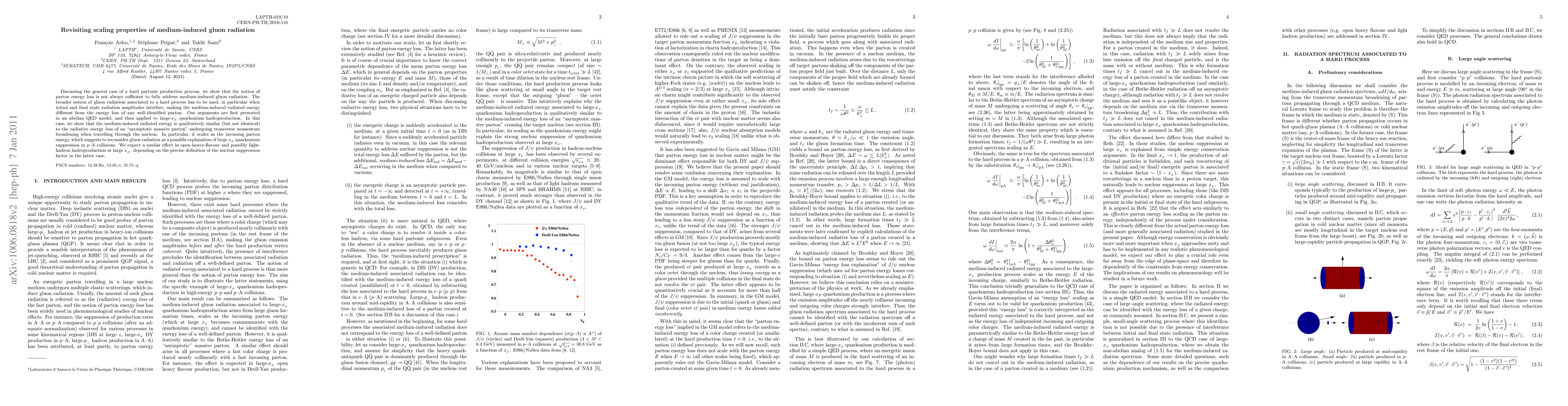 This paper revisits the scaling properties of medium-induced gluon radiation, arguing that parton energy loss alone is insufficient to fully describe the phenomenon. It suggests that broader gluon radiation concepts are necessary, especially when initial and final state radiation interfere, and applies these ideas to large-xF quarkonium and open heavy-flavour hadroproduction, proposing a reconsideration of gluon radiation as a potential explanation for observed suppression effects in p-A collisions.