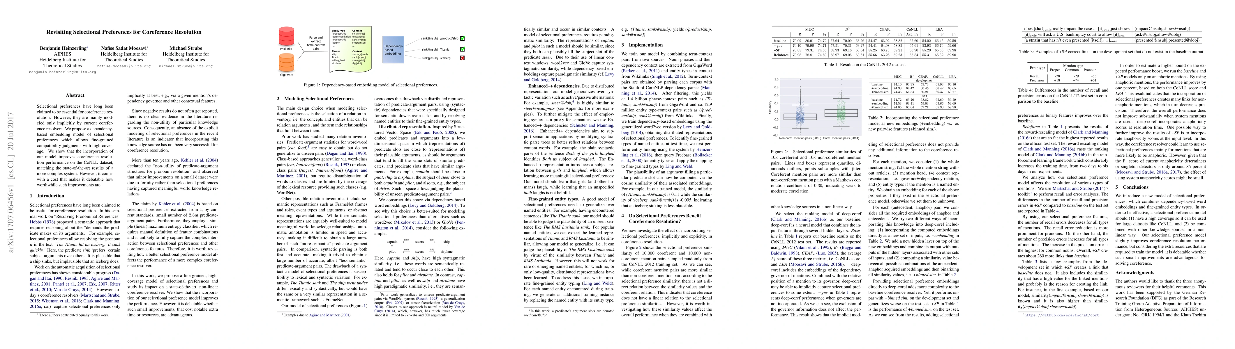 This paper proposes a new dependency-based embedding model for selectional preferences to enhance coreference resolution, achieving state-of-the-art performance on the CoNLL dataset, though it raises questions about the cost-effectiveness of such improvements.