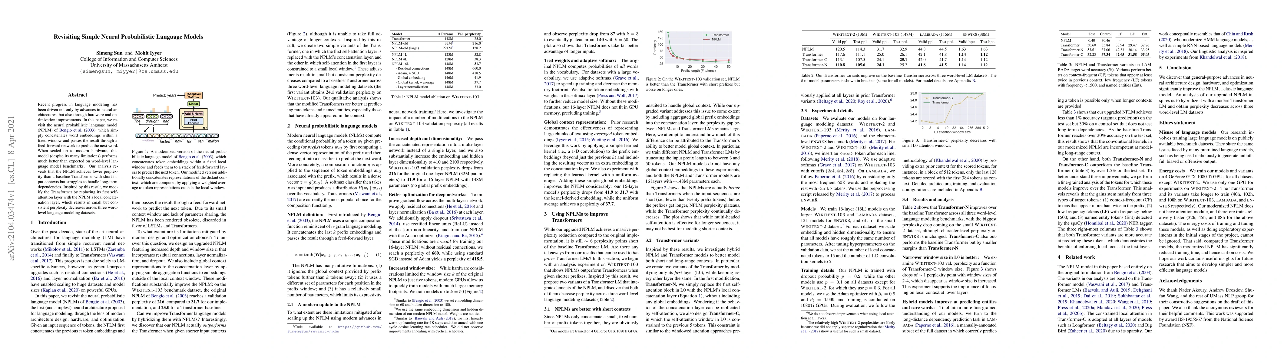 This paper revisits the neural probabilistic language model (NPLM) and finds it performs surprisingly well on modern hardware despite its simplicity. The study modifies a Transformer model by incorporating the NPLM's local concatenation layer, achieving small but consistent improvements in perplexity across several datasets.