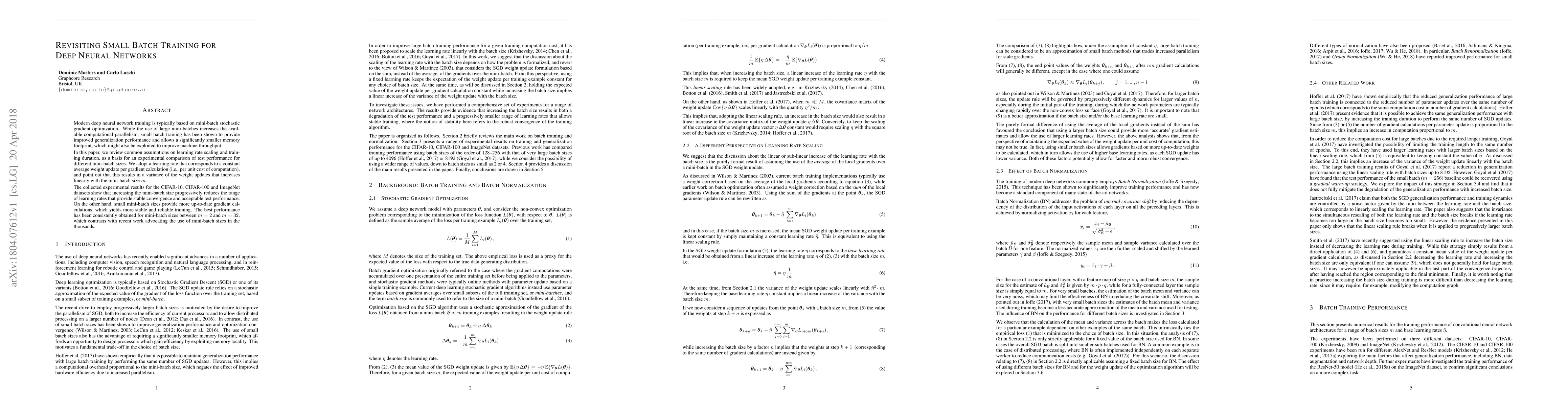 This paper reviews the impact of mini-batch size on deep neural network training, finding that small batch sizes (between $m = 2$ and $m = 32$) yield better generalization and stability compared to large batches, despite higher computational costs. The study emphasizes the importance of learning rate scaling for optimal performance across different batch sizes.