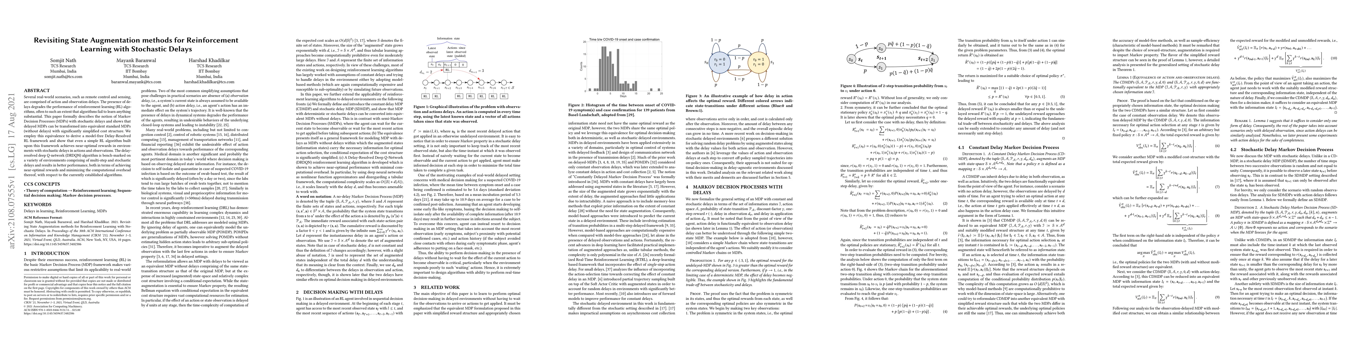 This paper explores reinforcement learning methods for environments with stochastic delays, proposing a Delay-Resolved RL framework that transforms delayed MDPs into standard MDPs. The DRDQN algorithm demonstrates near-optimal performance and reduced computational overhead compared to existing algorithms.
