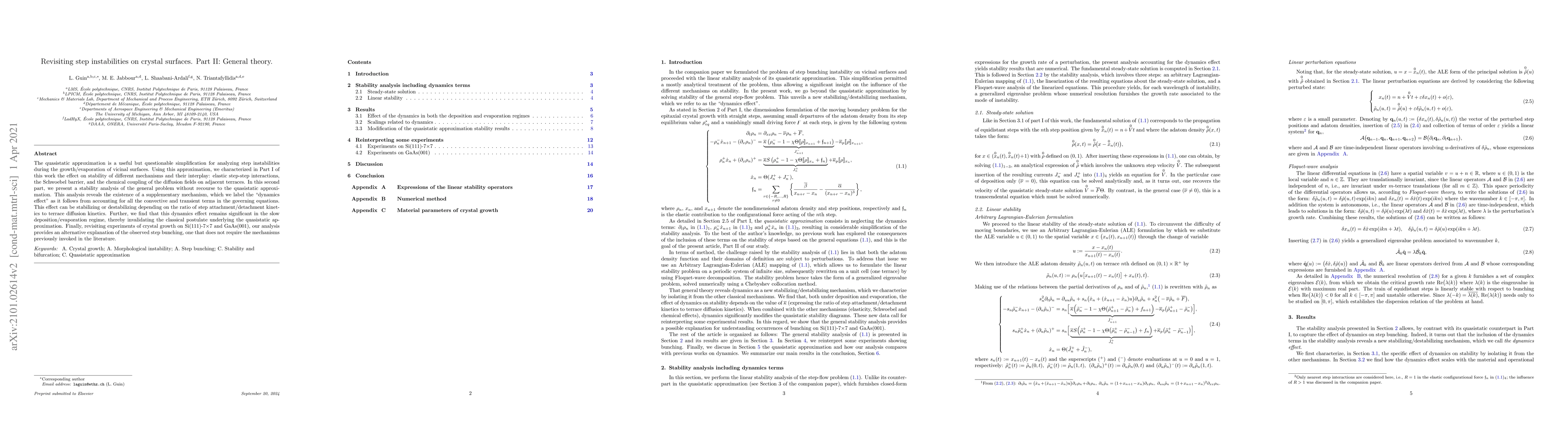 The quasistatic approximation is a useful but questionable simplification for analyzing step instabilities during the growth/evaporation of vicinal surfaces. Using this approximation, we characterized in Part I of this work the effect on stability of different mechanisms and their interplay: elastic step-step interactions, the Schwoebel barrier, and the chemical coupling of the diffusion fields on adjacent terraces. In this second part, we present a stability analysis of the general problem without recourse to the quasistatic approximation. This analysis reveals the existence of a supplementary mechanism, which we label the "dynamics effect" as it follows from accounting for all the convective and transient terms in the governing equations. This effect can be stabilizing or destabilizing depending on the ratio of step attachment/detachment kinetics to terrace diffusion kinetics. Further, we find that this dynamics effect remains significant in the slow deposition/evaporation regime, thereby invalidating the classical postulate underlying the quasistatic approximation. Finally, revisiting experiments of crystal growth on Si(111)-7x7 and GaAs(001), our analysis provides an alternative explanation of the observed step bunching, one that does not require the mechanisms previously invoked in the literature.