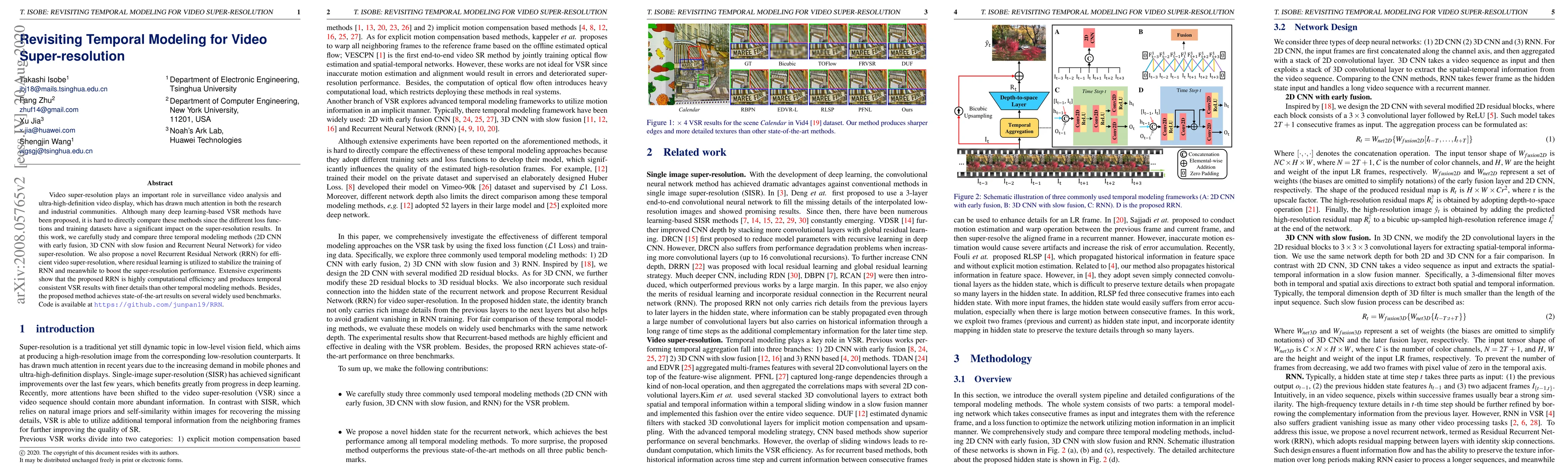 This paper revisits temporal modeling techniques for video super-resolution, comparing 2D CNN, 3D CNN, and RNN methods. It introduces a novel Recurrent Residual Network (RRN) that leverages residual learning to enhance performance and training efficiency, achieving state-of-the-art results on benchmark datasets.