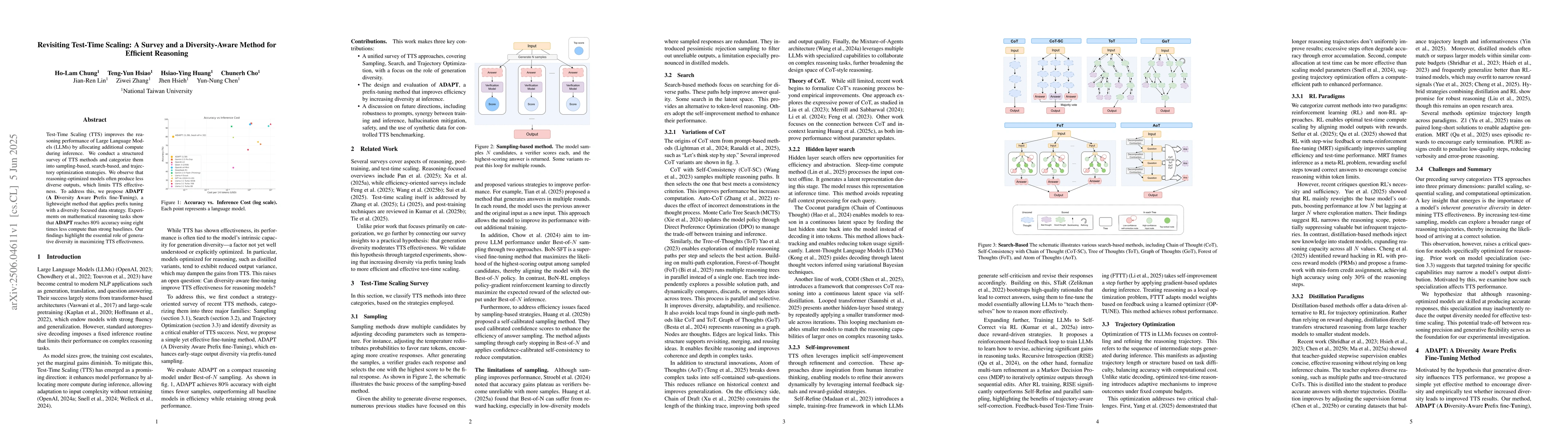 The paper conducts a structured survey of Test-Time Scaling (TTS) methods, categorizing them into sampling-based, search-based, and trajectory optimization strategies. It also proposes ADAPT, a diversity-aware prefix fine-tuning method, and evaluates it on mathematical reasoning tasks.
