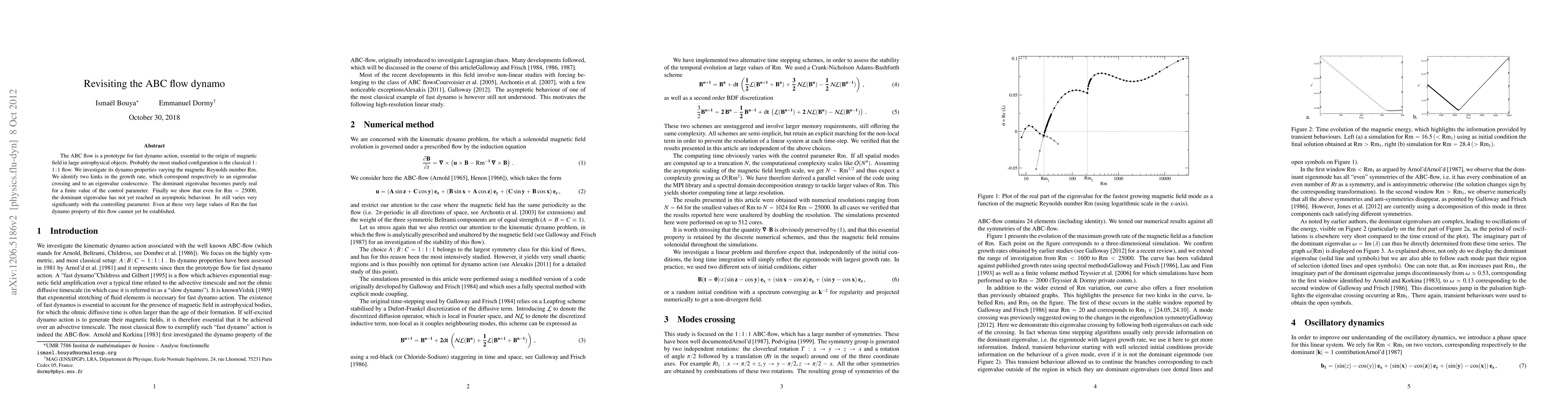 This paper examines the dynamo properties of the ABC flow, a model for fast dynamo action, by varying the magnetic Reynolds number Rm. The study identifies critical points in the growth rate linked to eigenvalue dynamics and finds that even at high Rm values, the flow's fast dynamo property remains unestablished.