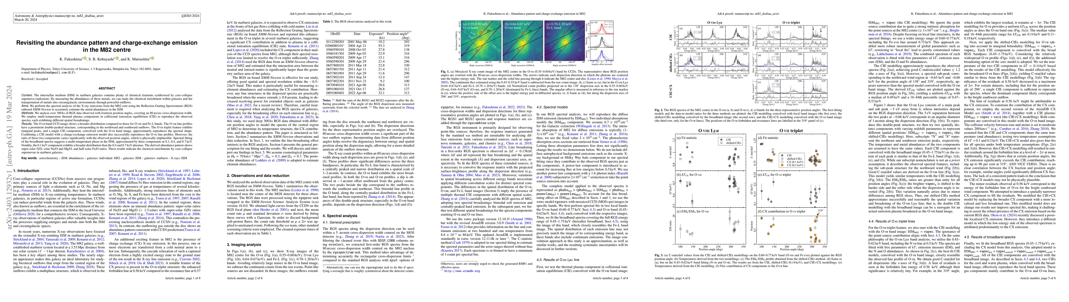 This study analyzes X-ray emissions from M82's core using XMM-Newton's RGS to determine metal abundances and outflow patterns. The findings show a multi-temperature ISM with prominent double-peaked O viii lines indicating outflows, and a super-solar N/O ratio indicative of chemical enrichment by supernovae.