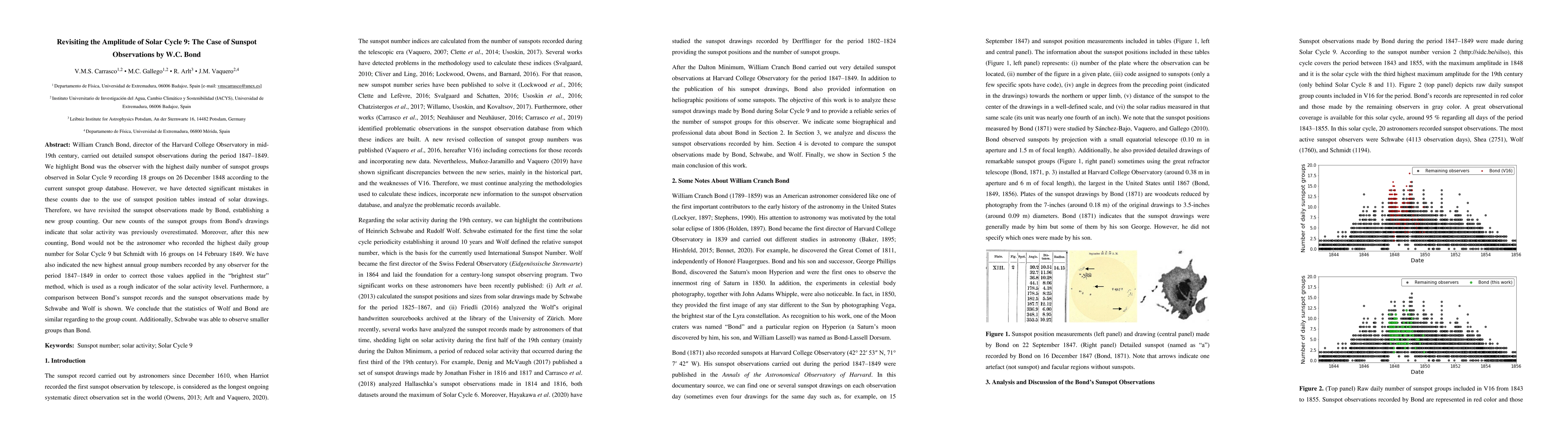 William Cranch Bond, director of the Harvard College Observatory in mid-19th century, carried out detailed sunspot observations during the period 1847-1849. We highlight Bond was the observer with the highest daily number of sunspot groups observed in Solar Cycle 9 recording 18 groups on 26 December 1848 according to the current sunspot group database. However, we have detected significant mistakes in these counts due to the use of sunspot position tables instead of solar drawings. Therefore, we have revisited the sunspot observations made by Bond, establishing a new group counting. Our new counts of the sunspot groups from Bond's drawings indicate that solar activity was previously overestimated. Moreover, after this new counting, Bond would not be the astronomer who recorded the highest daily group number for Solar Cycle 9 but Schmidt with 16 groups on 14 February 1849. We have also indicated the new highest annual group numbers recorded by any observer for the period 1847-1849 in order to correct those values applied in the "brightest star" method, which is used as a rough indicator of the solar activity level. Furthermore, a comparison between Bond's sunspot records and the sunspot observations made by Schwabe and Wolf is shown. We conclude that the statistics of Wolf and Bond are similar regarding to the group count. Additionally, Schwabe was able to observe smaller groups than Bond.