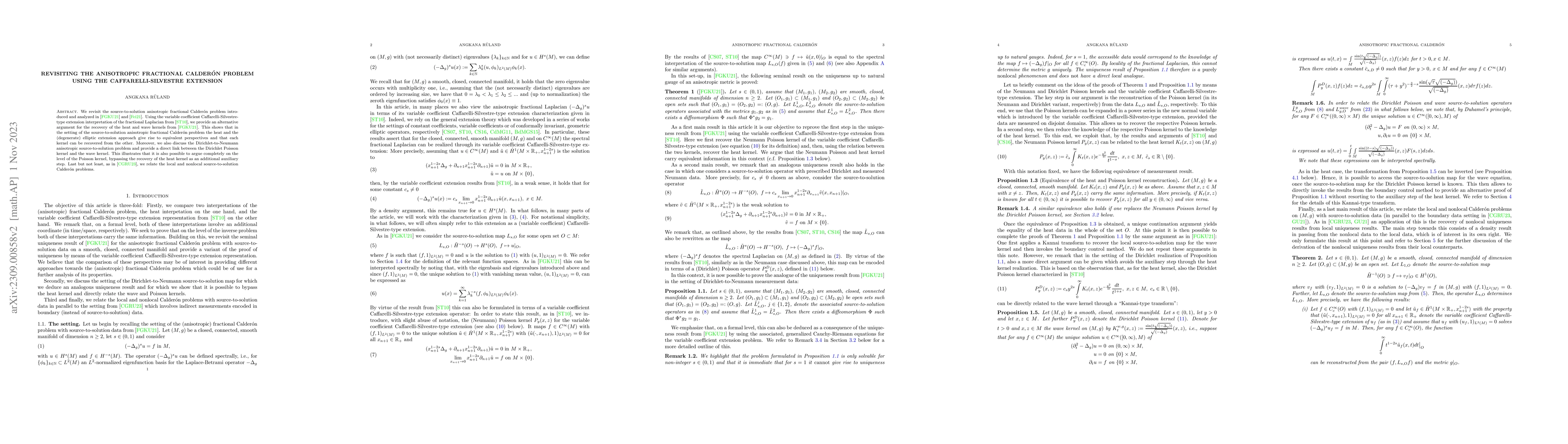This paper revisits the anisotropic fractional Calderón problem using the Caffarelli-Silvestre extension, providing an alternative method for recovering heat and wave kernels. It establishes equivalence between the heat and Caffarelli-Silvestre approaches and links the Dirichlet Poisson kernel directly to the wave kernel, bypassing the need for heat kernel recovery.
