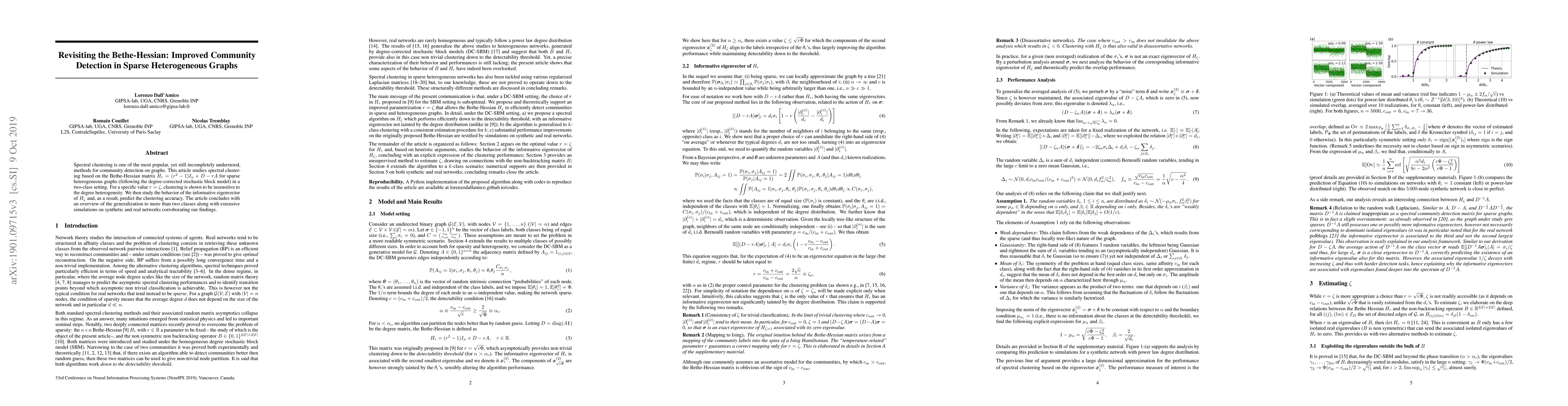 This paper improves community detection in sparse heterogeneous graphs using spectral clustering based on the Bethe-Hessian matrix. It identifies a specific value of $r$ that renders clustering insensitive to degree heterogeneity, and predicts clustering accuracy through the behavior of the informative eigenvector.