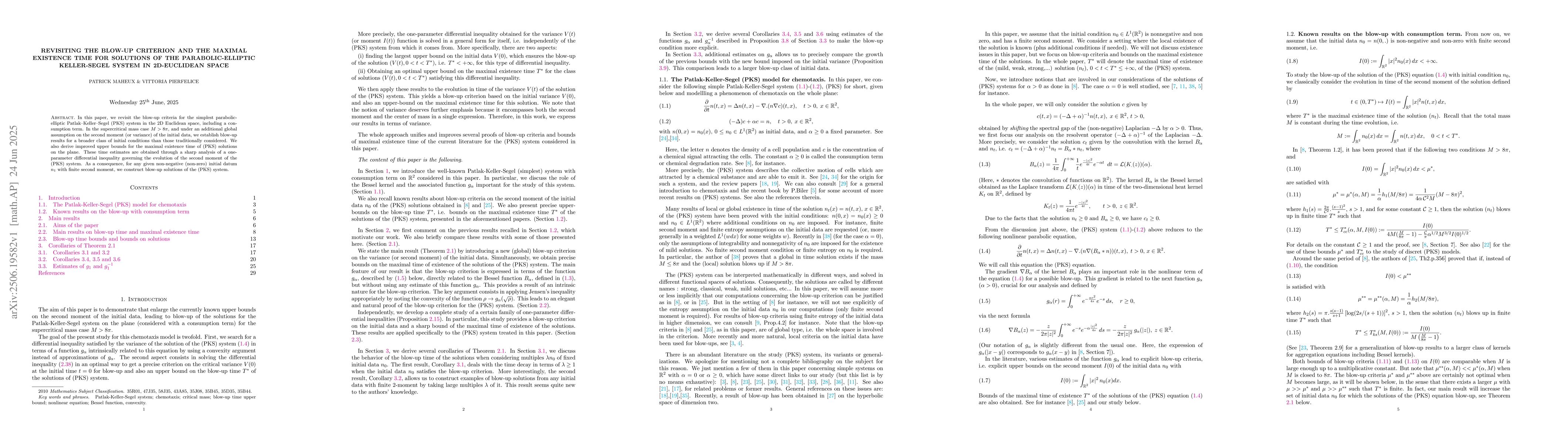 In this paper, we revisit the blow-up criteria for the simplest parabolic-elliptic (PKS) system in the 2D Euclidean space, including a consumption term. In the supercritical mass case M > 8pi, and under an additional global assumption on the second moment (or variance) of the initial data, we establish blow-up results for a broader class of initial conditions than those traditionally considered. We also derive improved upper bounds for the maximal existence time of (PKS) solutions on the plane. These time estimates are obtained through a sharp analysis of a one-parameter differential inequality governing the evolution of the second moment of the (PKS) system. As a consequence, for any given non-negative (non-zero) initial datum n1 with finite second moment, we construct blow-up solutions of the (PKS) system.