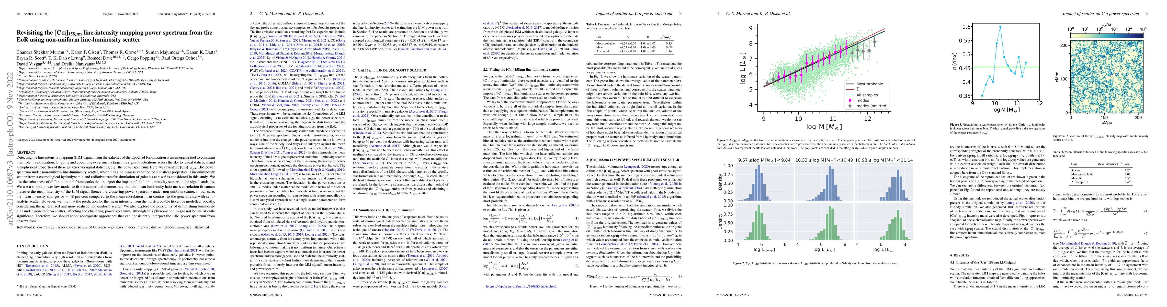 Detecting the line-intensity mapping (LIM) signal from the galaxies of the Epoch of Reionization is an emerging tool to constrain their role in reionization. Ongoing and upcoming experiments target the signal fluctuations across the sky to reveal statistical and astrophysical properties of these galaxies via signal statistics, e.g., the power spectrum. Here, we revisit the [C II]$_{158 \mu \text{m}}$ LIM power spectrum under non-uniform line-luminosity scatter, which has a halo-mass variation of statistical properties. Line-luminosity scatter from a cosmological hydrodynamic and radiative transfer simulation of galaxies at $z=6$ is considered in this study. We test the robustness of different model frameworks that interpret the impact of the line-luminosity scatter on the signal statistics. We use a simple power-law model to fit the scatter and demonstrate that the mean luminosity-halo mass correlation fit cannot preserve the mean intensity of the LIM signal (hence the clustering power spectrum) under non-uniform scatter. In our case, the mean intensity changes by $\sim 48$ per cent compared to the mean correlation fit in contrast to the general case with semi-analytic scatter. However, we find that the prediction for the mean intensity from the most-probable fit can be modelled robustly, considering the generalized and more realistic non-uniform scatter. We also explore the possibility of diminishing luminosity bias under non-uniform scatter, affecting the clustering power spectrum, although this phenomenon might not be statistically significant. Therefore, we should adopt appropriate approaches that can consistently interpret the LIM power spectrum from observations.