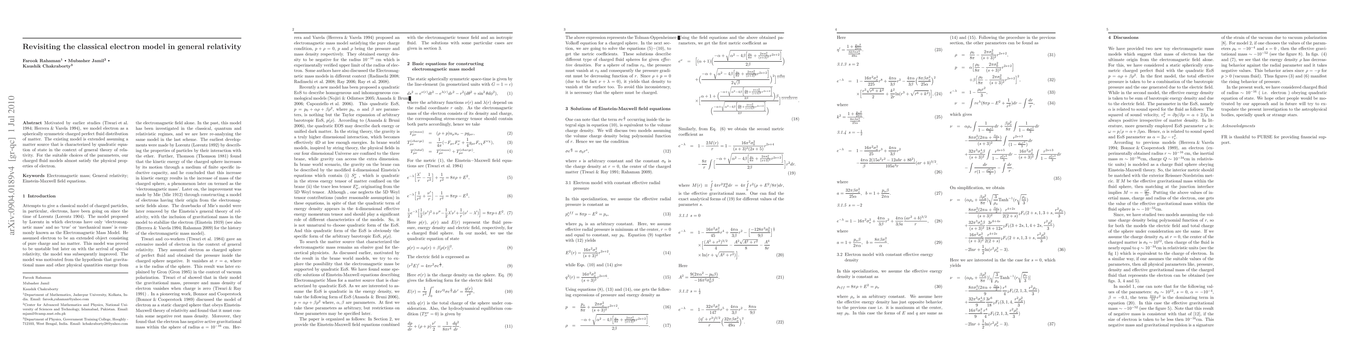 Researchers revisited the classical electron model in general relativity, extending it with a quadratic equation of state for matter, which showed promising results in matching physical properties of electrons.