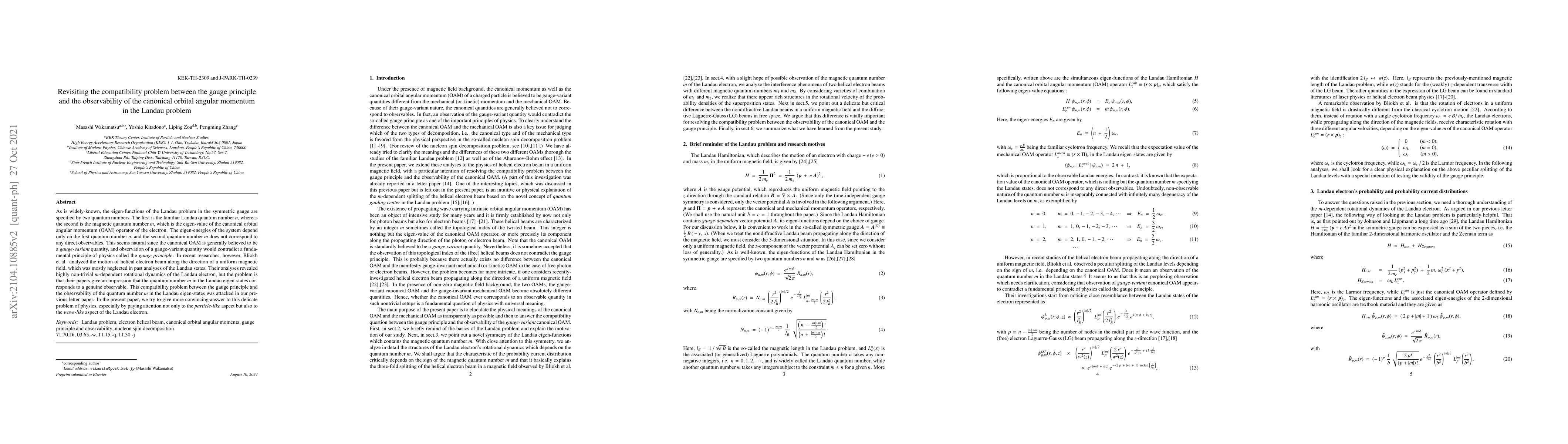 As is widely-known, the eigen-functions of the Landau problem in the symmetric gauge are specified by two quantum numbers. The first is the familiar Landau quantum number $n$, whereas the second is the magnetic quantum number $m$, which is the eigen-value of the canonical orbital angular momentum (OAM) operator of the electron. The eigen-energies of the system depend only on the first quantum number $n$, and the second quantum number $m$ does not correspond to any direct observables. This seems natural since the canonical OAM is generally believed to be a {\it gauge-variant} quantity, and observation of a gauge-variant quantity would contradict a fundamental principle of physics called the {\it gauge principle}. In recent researches, however, Bliohk et al. analyzed the motion of helical electron beam along the direction of a uniform magnetic field, which was mostly neglected in past analyses of the Landau states. Their analyses revealed highly non-trivial $m$-dependent rotational dynamics of the Landau electron, but the problem is that their papers give an impression that the quantum number $m$ in the Landau eigen-states corresponds to a genuine observable. This compatibility problem between the gauge principle and the observability of the quantum number $m$ in the Landau eigen-states was attacked in our previous letter paper. In the present paper, we try to give more convincing answer to this delicate problem of physics, especially by paying attention not only to the {\it particle-like} aspect but also to the {\it wave-like} aspect of the Landau electron.