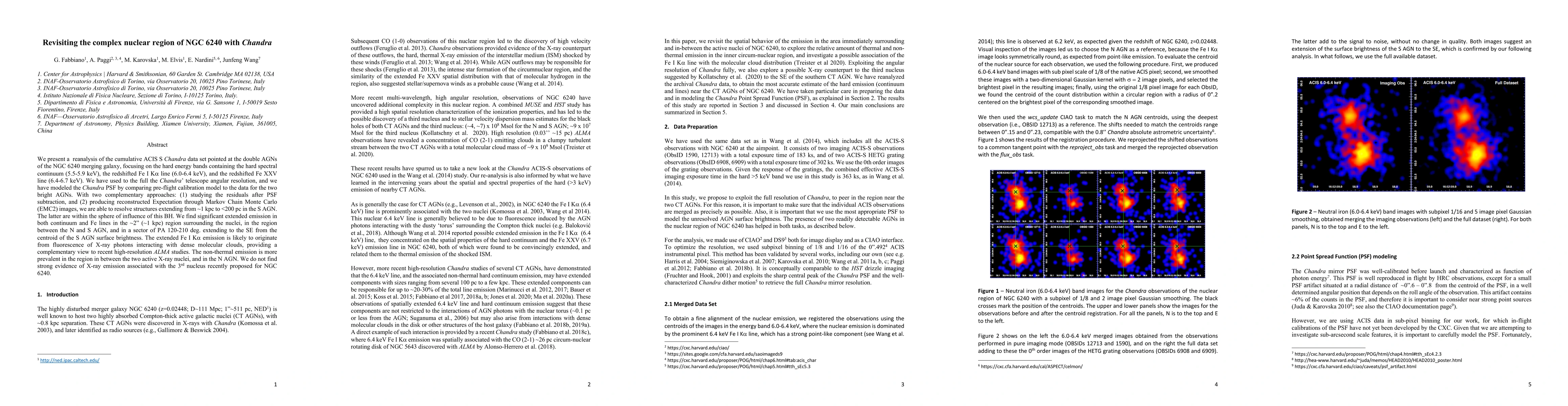 This paper reanalyzes Chandra data of the NGC 6240 galaxy, revealing extended emission from the merging active galactic nuclei (AGN) in hard X-ray bands. Significant extended Fe K alpha emission suggests fluorescence from dense molecular clouds, complementing ALMA studies.