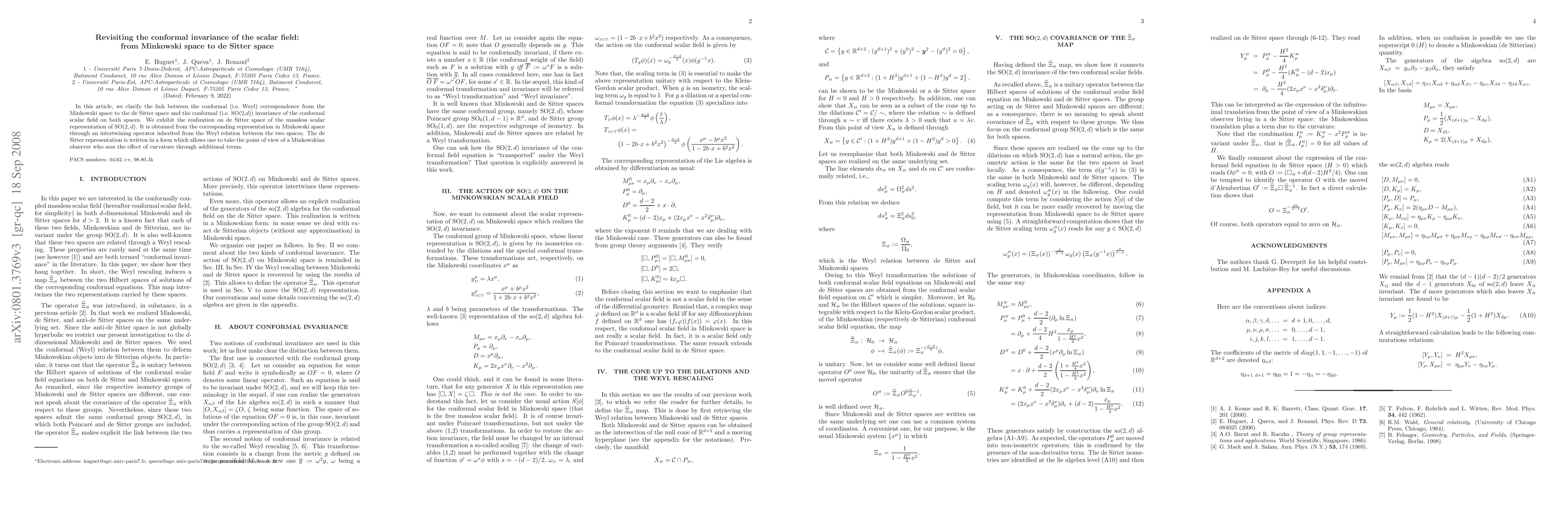 This paper elucidates the conformal correspondence between Minkowski and de Sitter spaces and demonstrates how the massless scalar field representation of SO(2,d) on de Sitter space is derived from Minkowski space via an intertwining operator, with a Minkowskian observer perspective accounting for curvature effects.