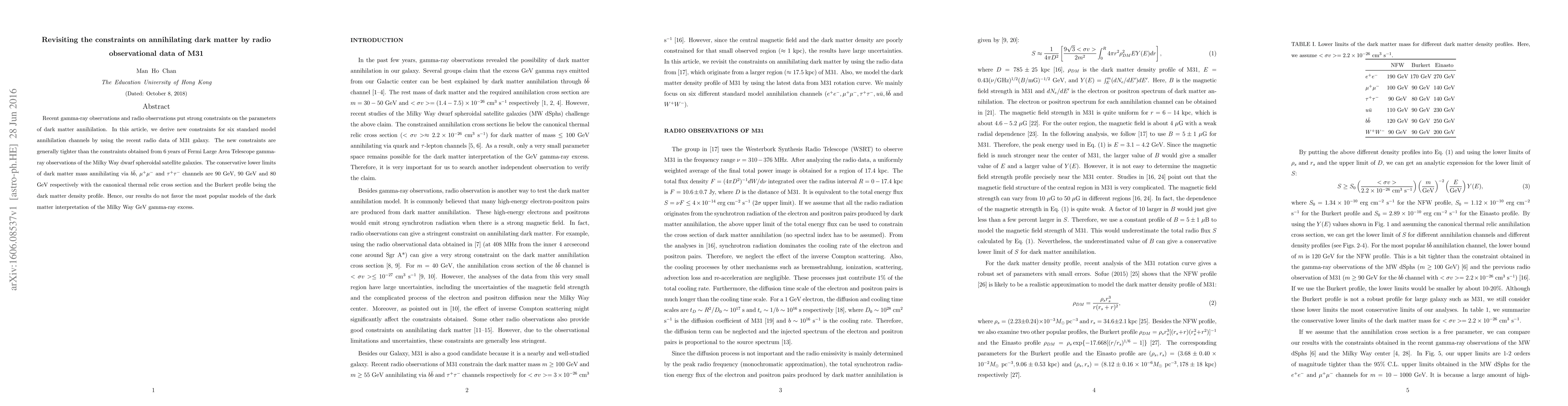This paper derives tighter constraints on dark matter annihilation parameters using recent radio data from M31, finding lower limits of 90 GeV for $b\bar{b}$ and $\mu^+\mu^-$ channels, and 80 GeV for $\tau^+\tau^-$, which do not support the popular Milky Way GeV gamma-ray excess models.
